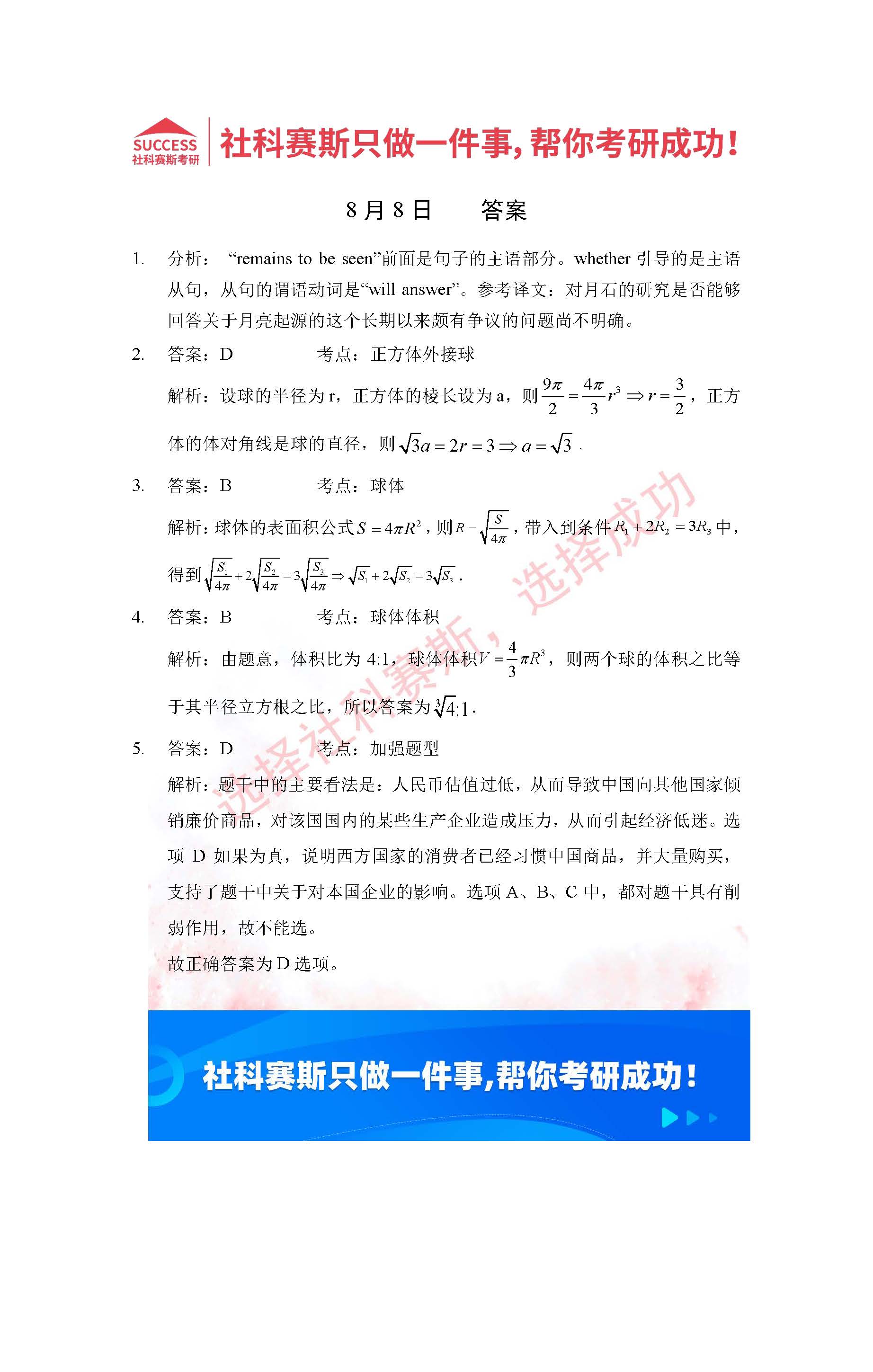 以上就是社科賽斯考研網(wǎng)小編為大家整理2022考研每日一練:8月8日管理類(lèi)聯(lián)考每日一練及答案的全部?jī)?nèi)容,希望各位考生堅(jiān)持利用起來(lái),更多每日一練內(nèi)容請(qǐng)持續(xù)關(guān)注社科賽斯考研網(wǎng)希望能對(duì)廣大考生有所幫助。
