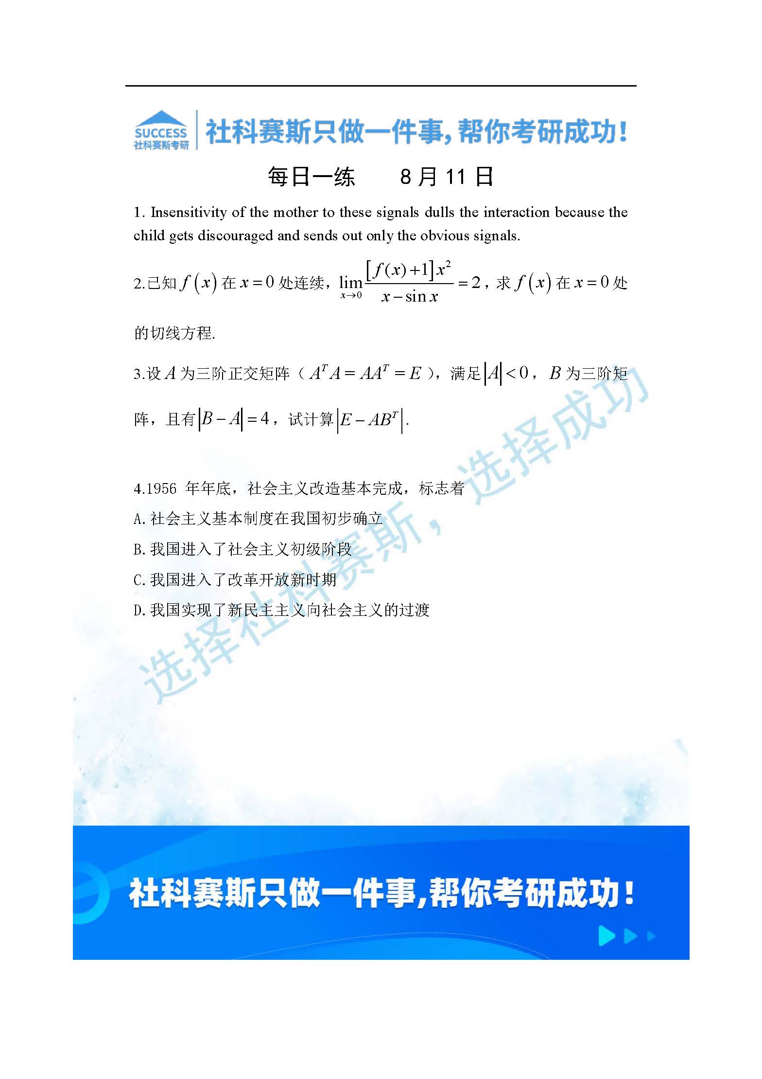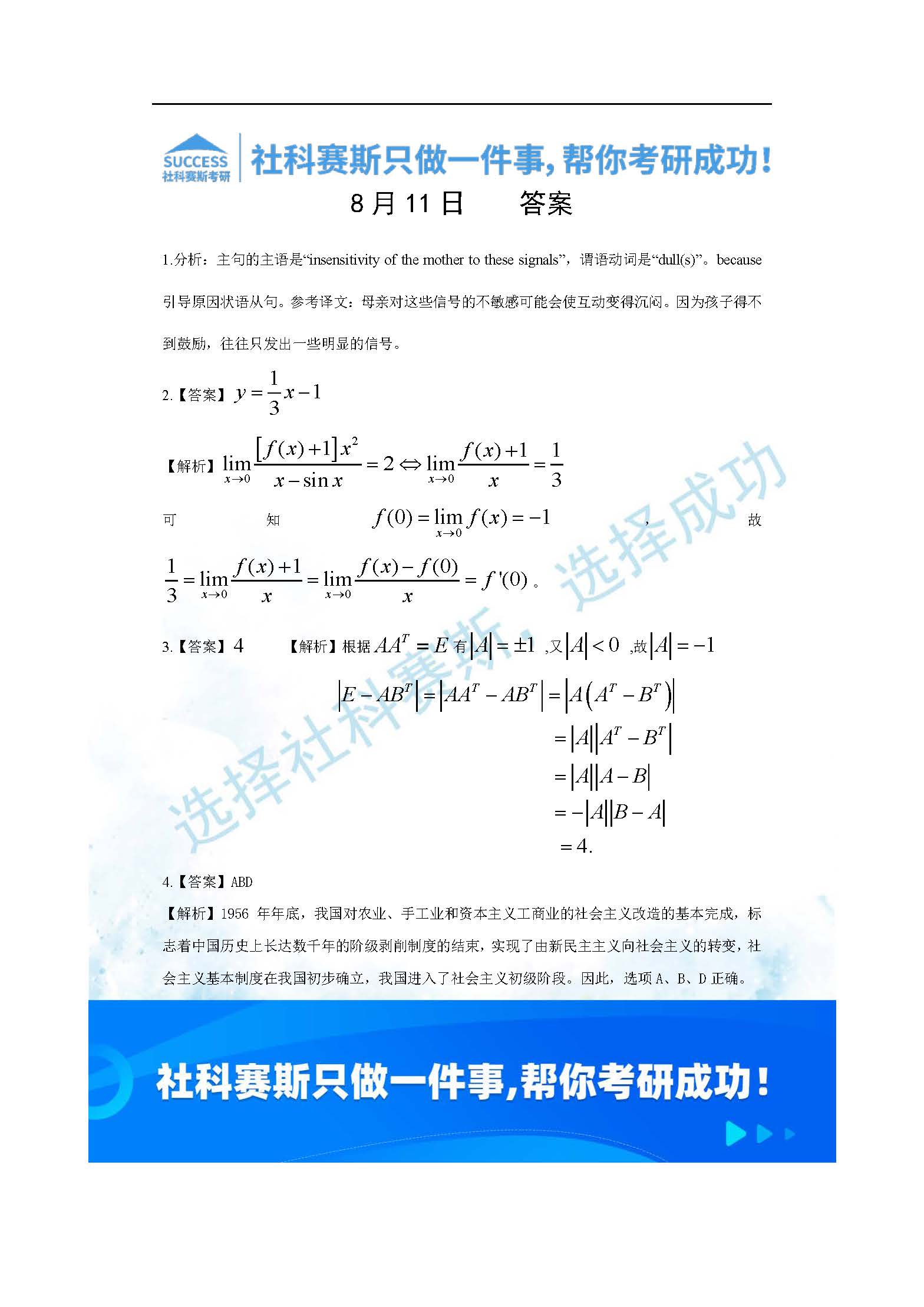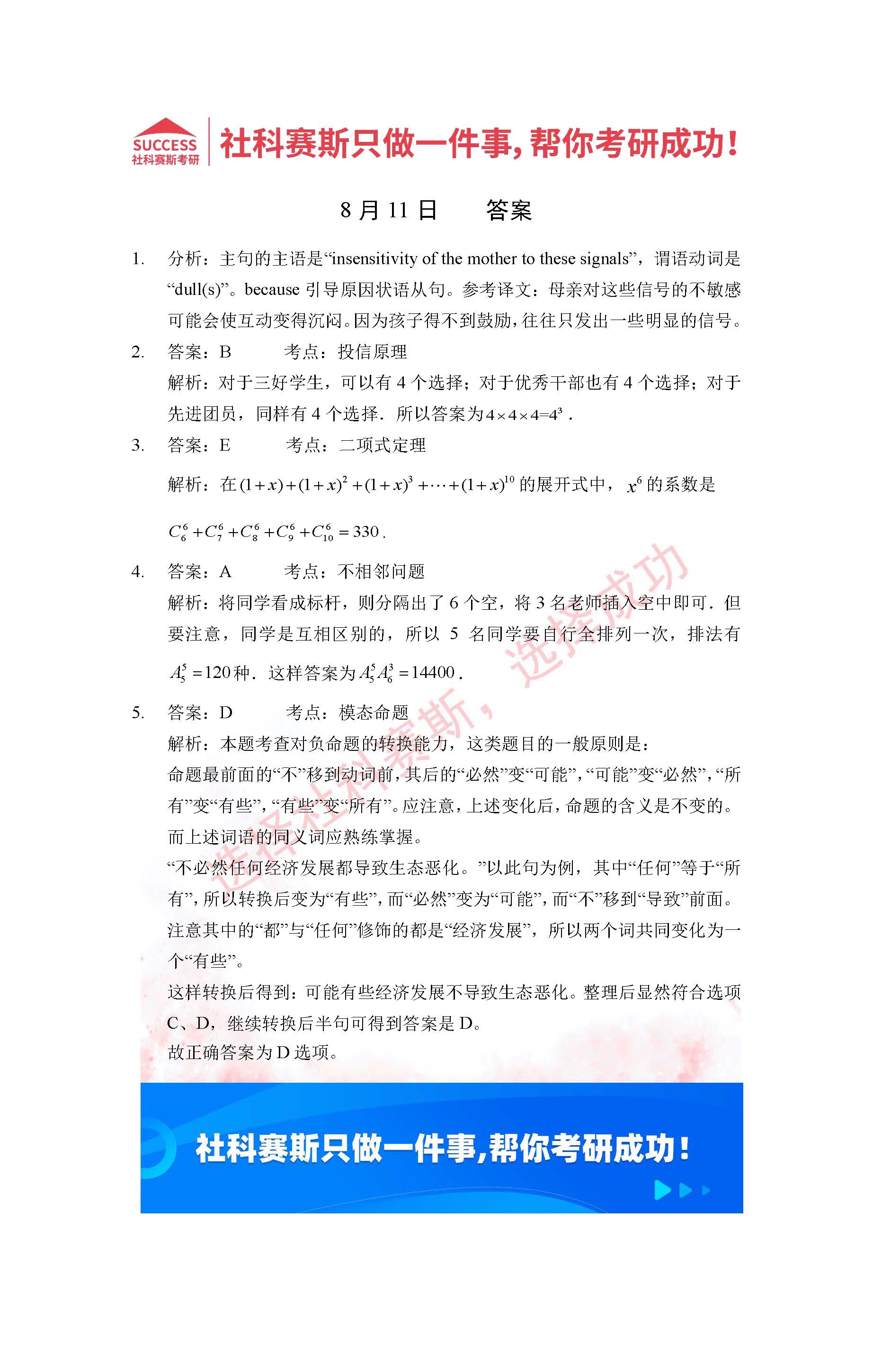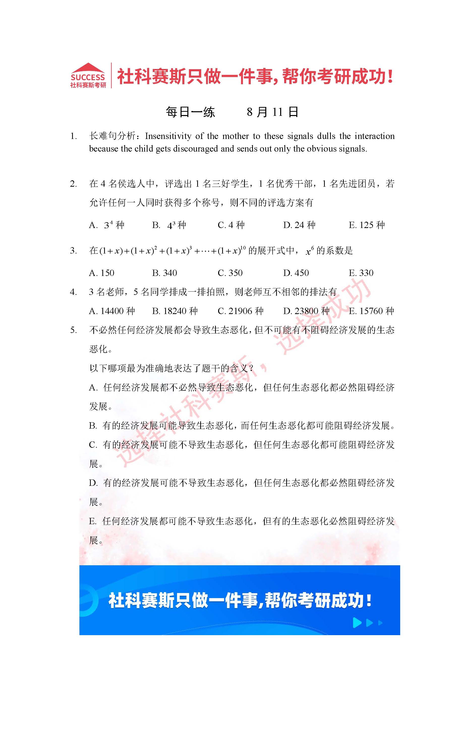 以上就是社科賽斯考研網小編為大家整理2022考研每日一練:8月11日管理類聯考每日一練及答案的全部內容,希望各位考生堅持利用起來,更多每日一練內容請持續關注社科賽斯考研網