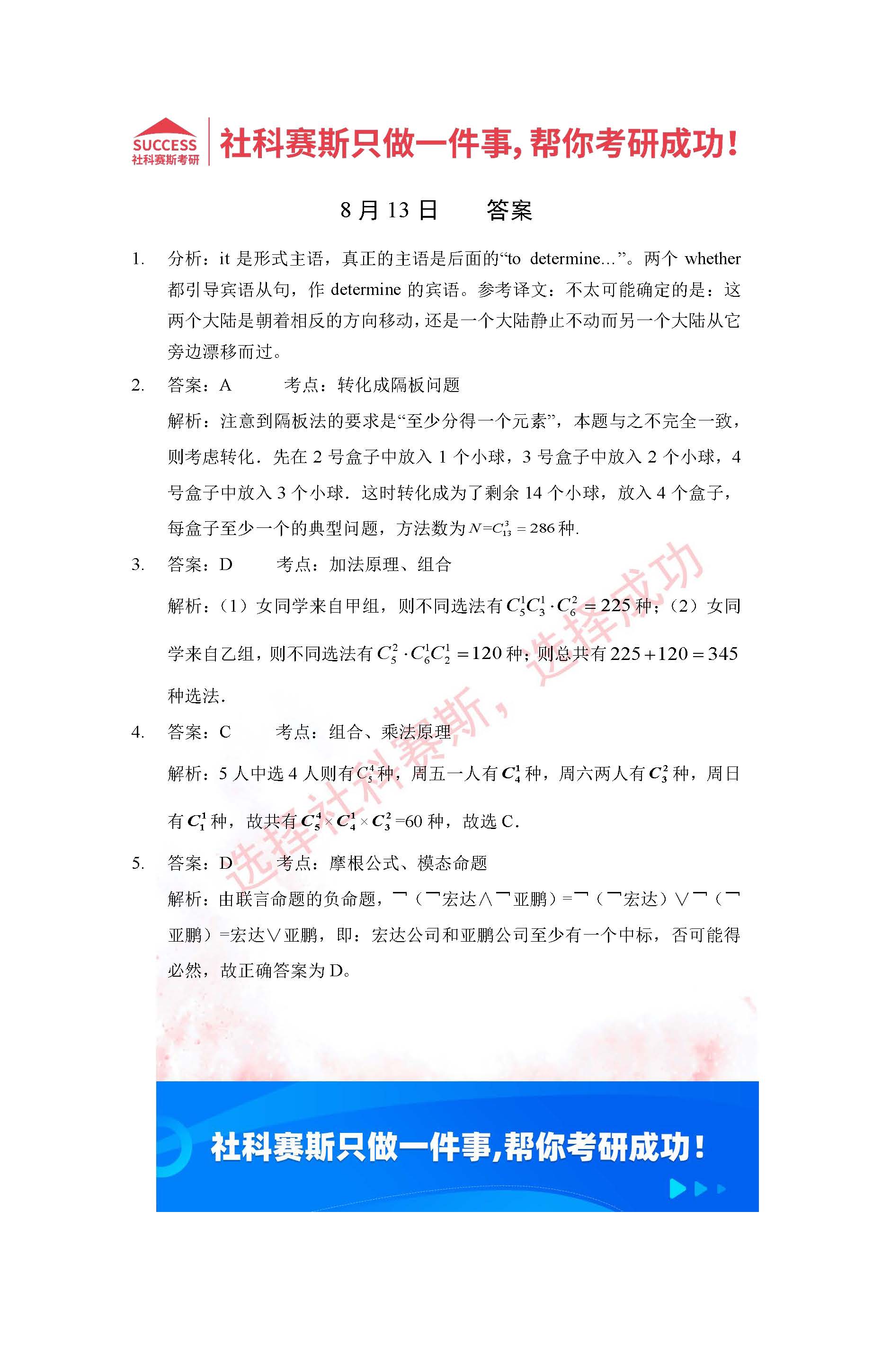 以上就是社科賽斯考研網(wǎng)小編為大家整理2022考研每日一練:8月13日管理類聯(lián)考每日一練及答案的全部內(nèi)容,希望各位考生堅持利用起來,更多每日一練內(nèi)容請持續(xù)關(guān)注社科賽斯考研網(wǎng)