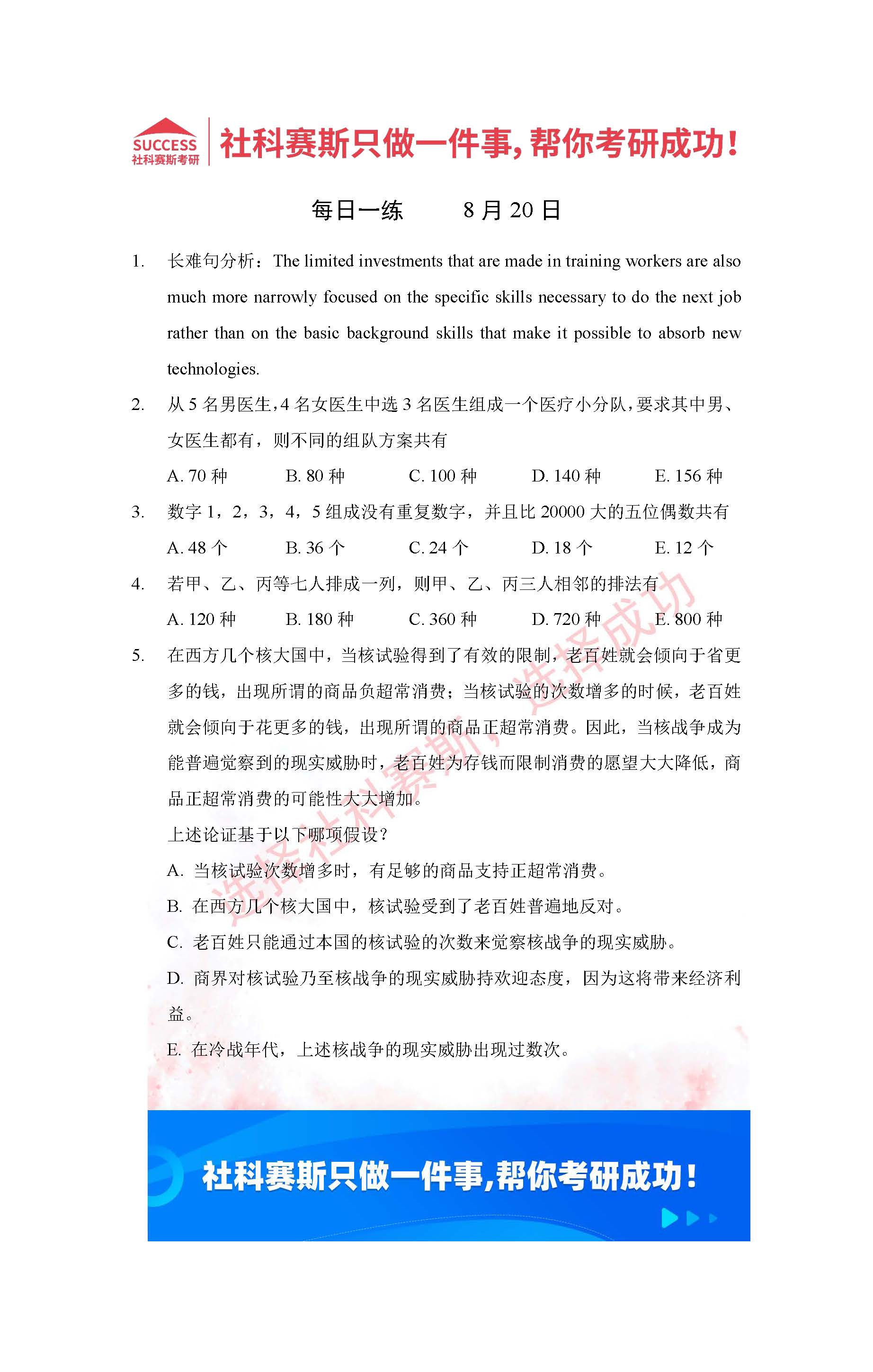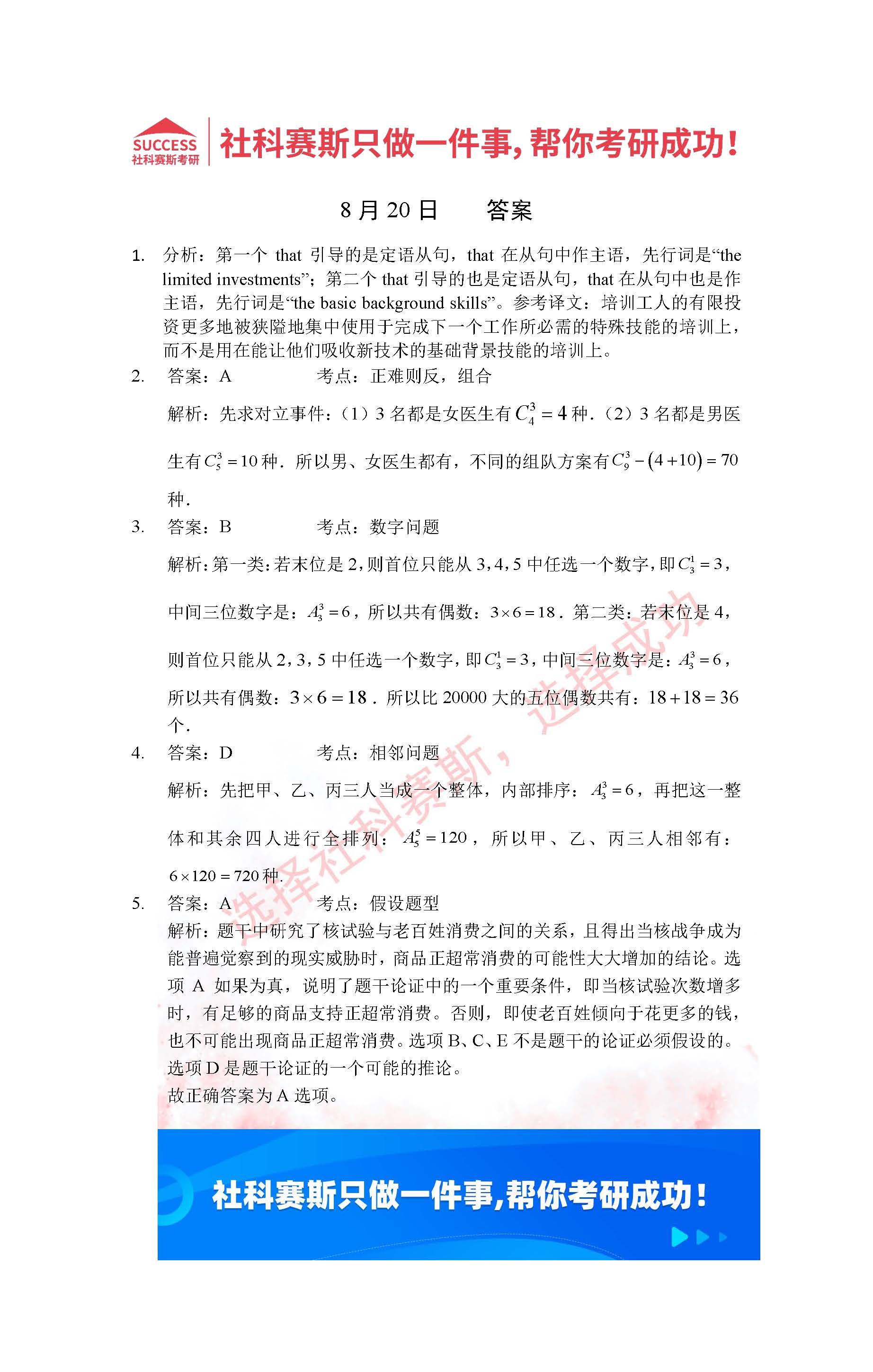 以上就是社科賽斯考研網小編為大家整理2022考研每日一練:8月20日管理類聯考每日一練及答案的全部內容,希望各位考生堅持利用起來,更多每日一練內容請持續關注社科賽斯考研網