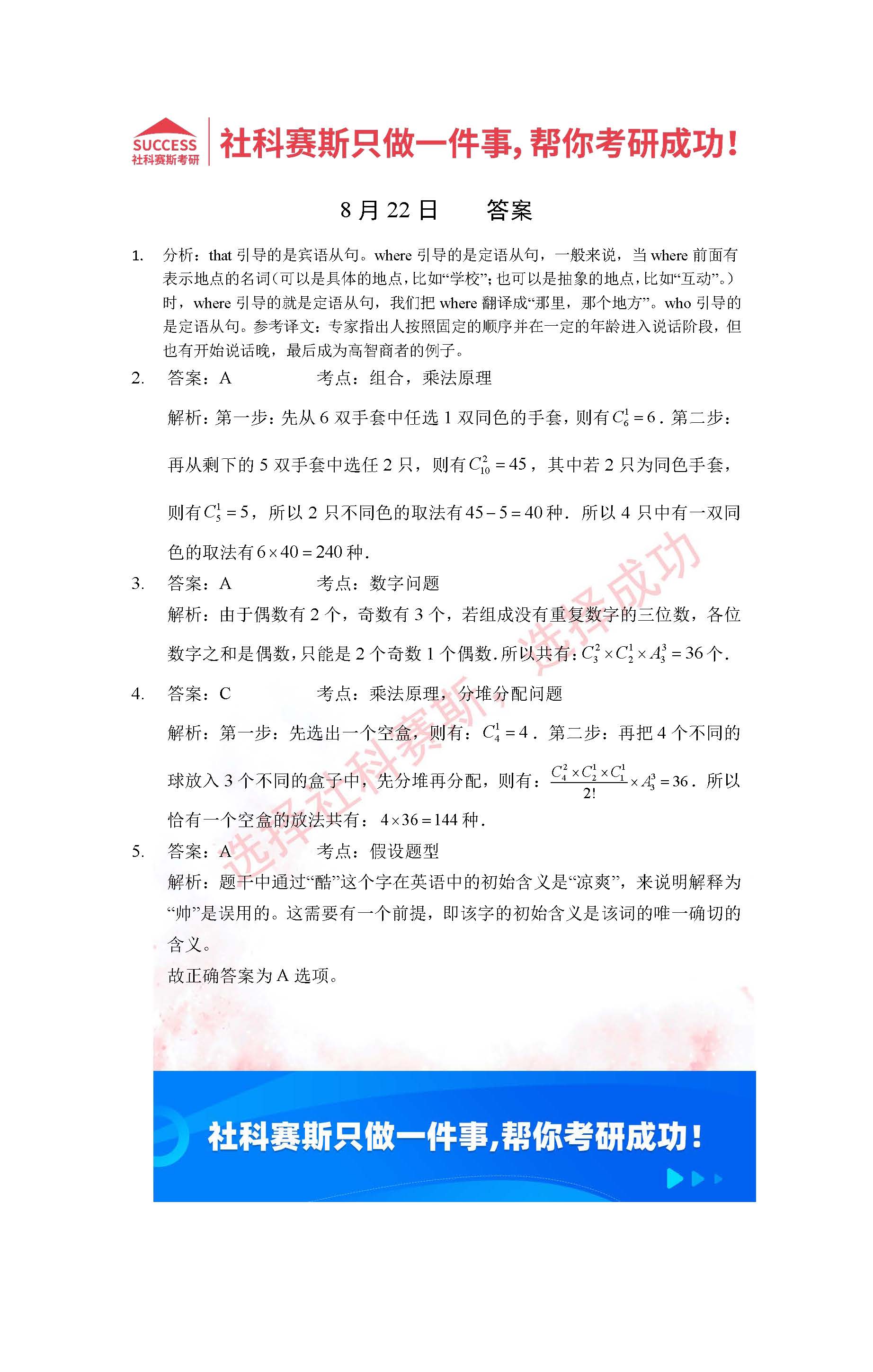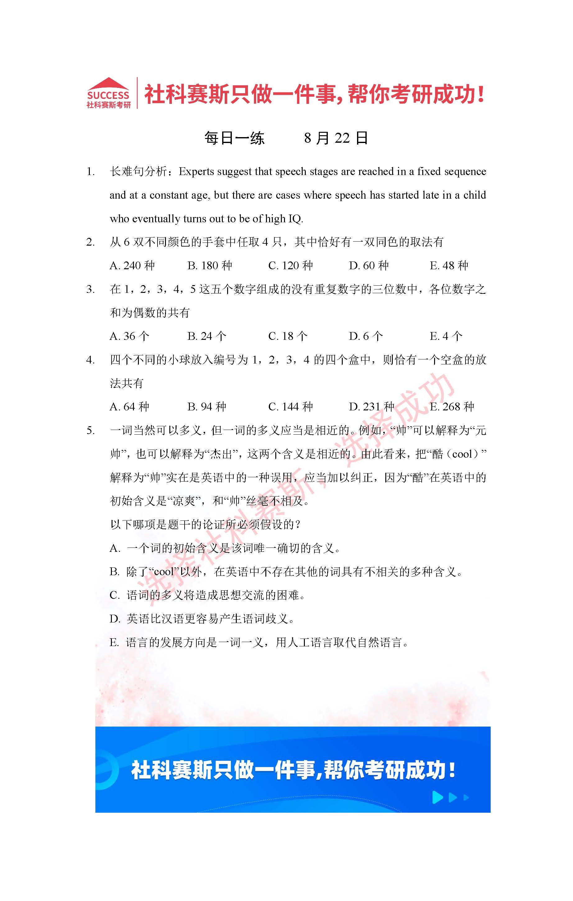 以上就是社科賽斯考研網小編為大家整理2022考研每日一練:8月22日管理類聯考每日一練及答案的全部內容,希望各位考生堅持利用起來,更多每日一練內容請持續關注社科賽斯考研網