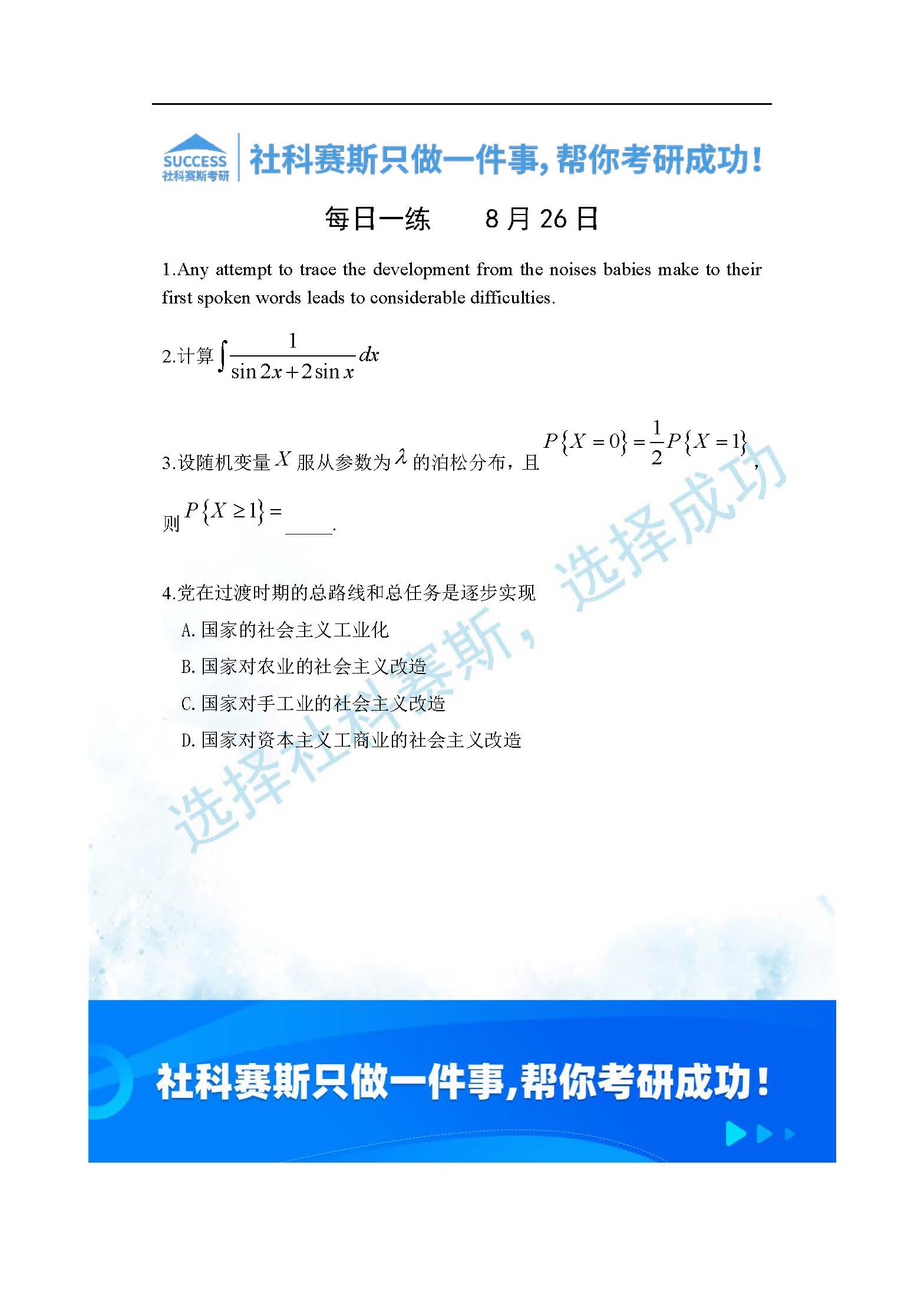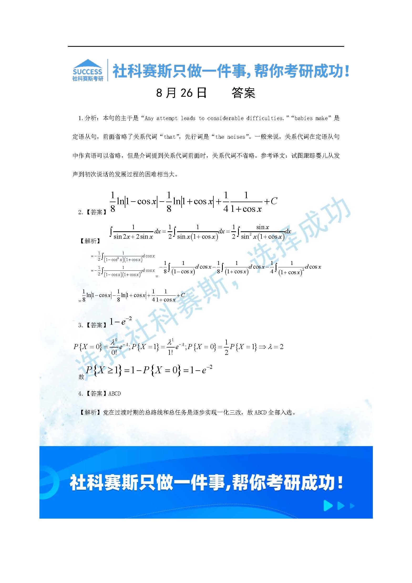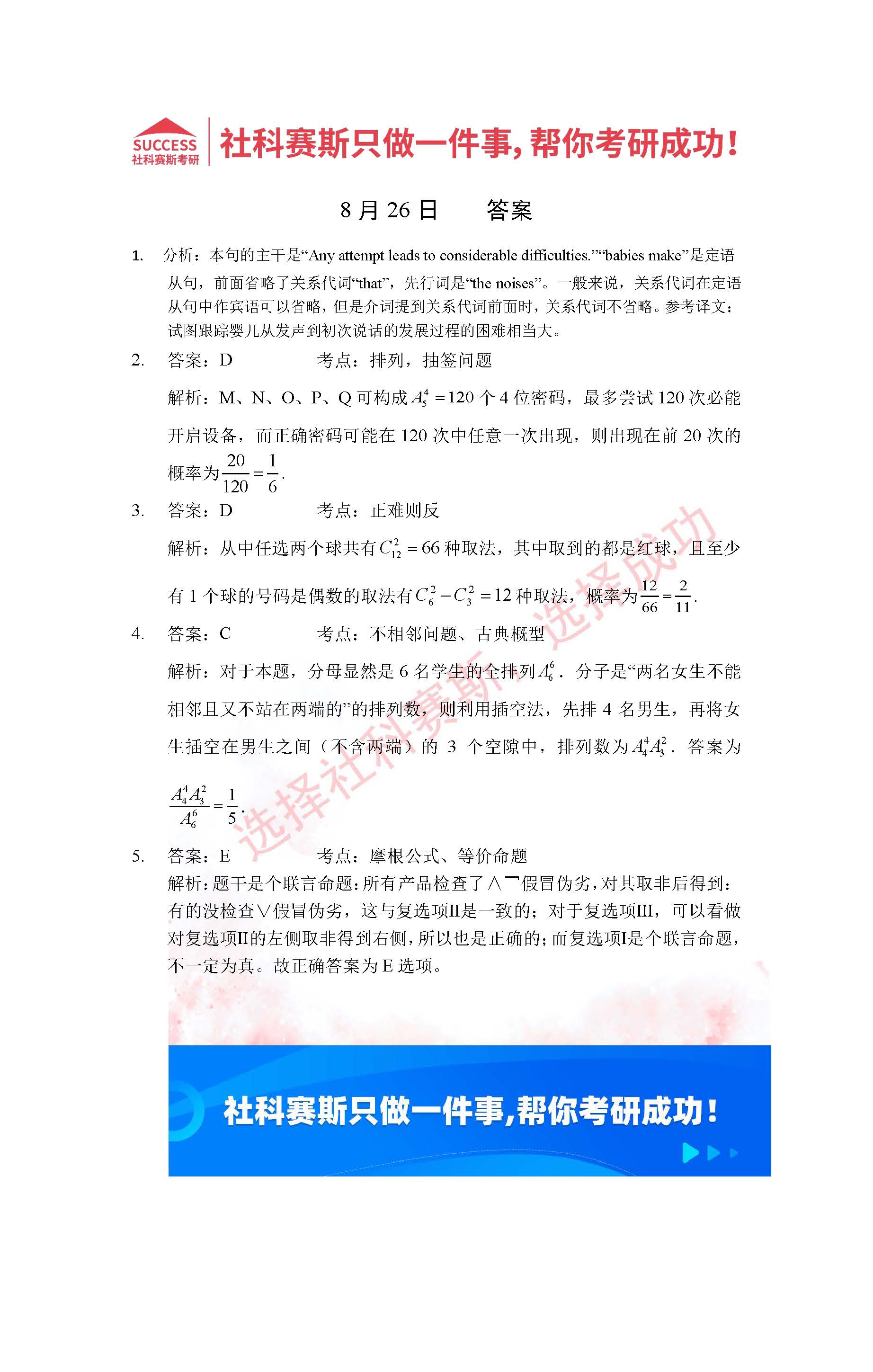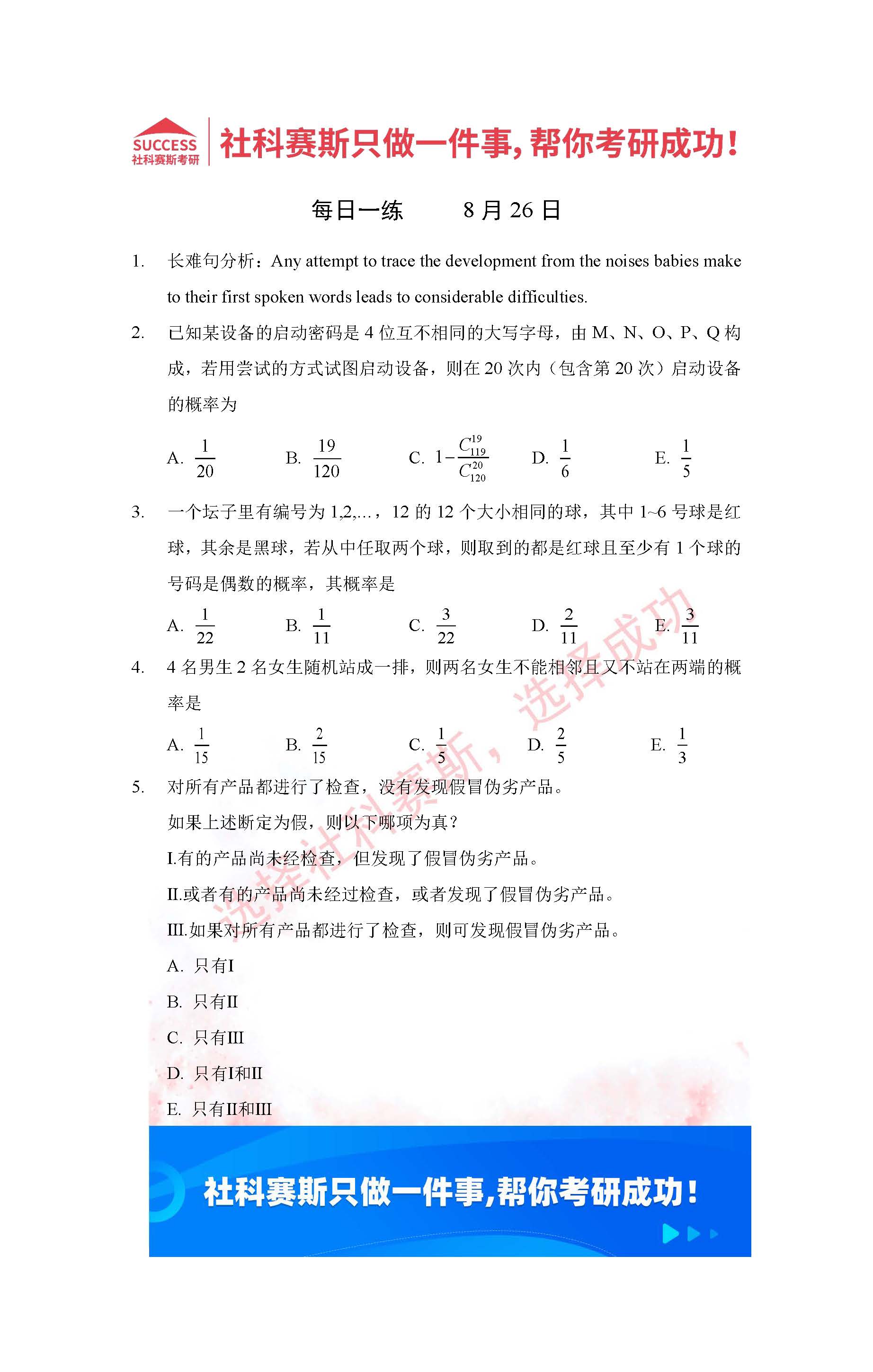以上就是社科賽斯考研網小編為大家整理2022考研每日一練:8月26日管理類聯考每日一練及答案的全部內容,希望各位考生堅持利用起來,更多每日一練內容請持續關注社科賽斯考研網