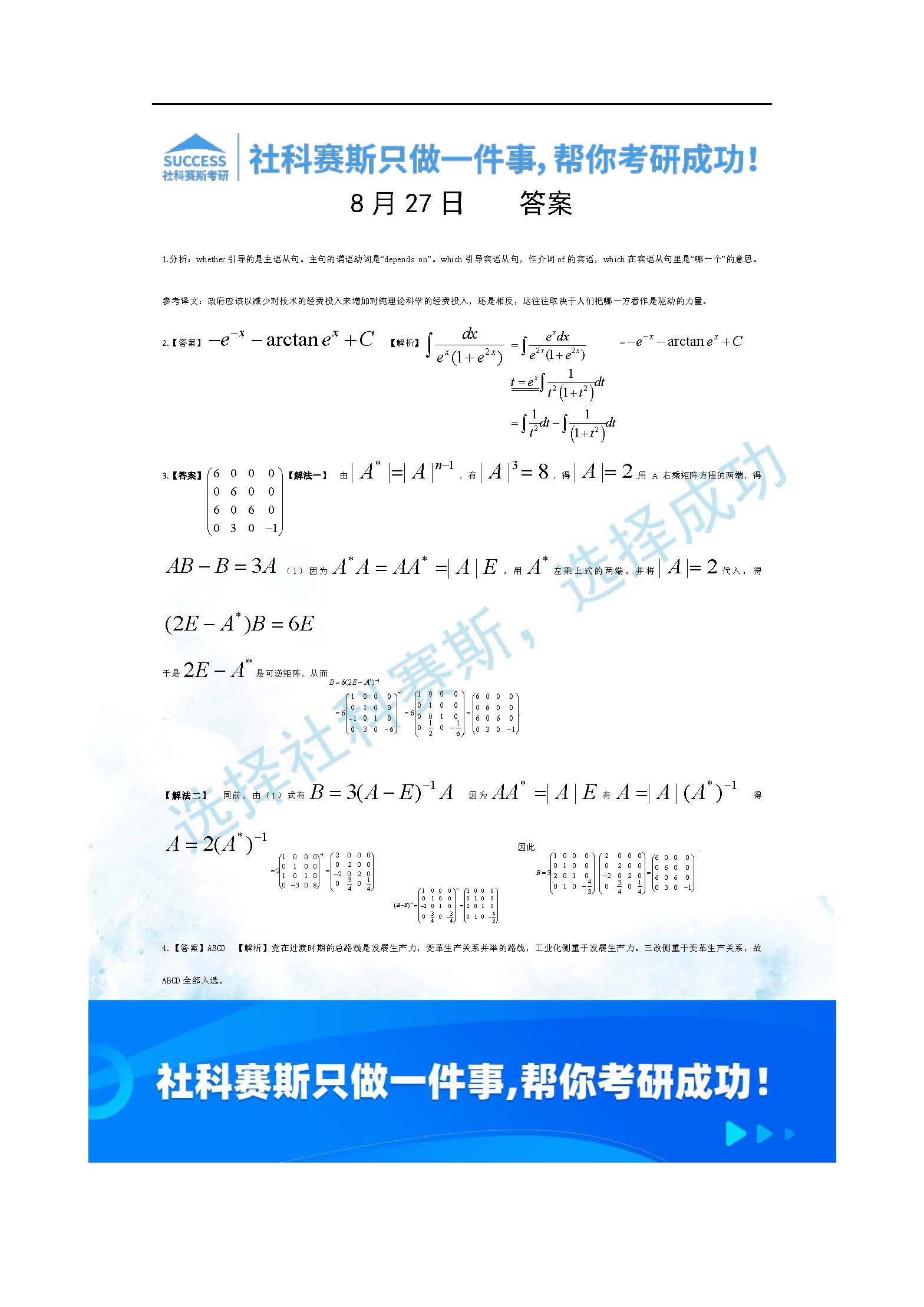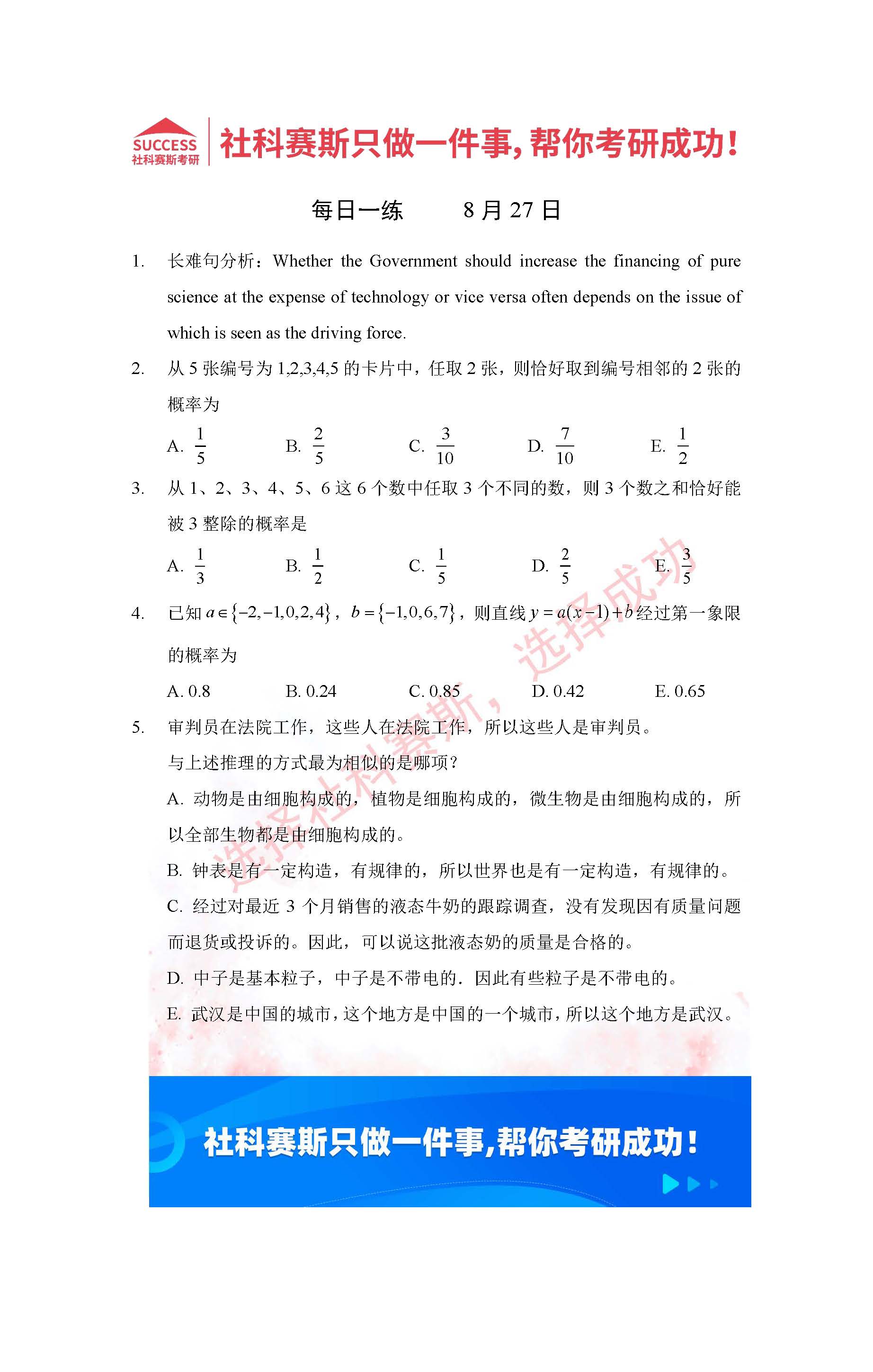 以上就是社科賽斯考研網小編為大家整理2022考研每日一練:8月27日管理類聯考每日一練及答案的全部內容,希望各位考生堅持利用起來,更多每日一練內容請持續關注社科賽斯考研網