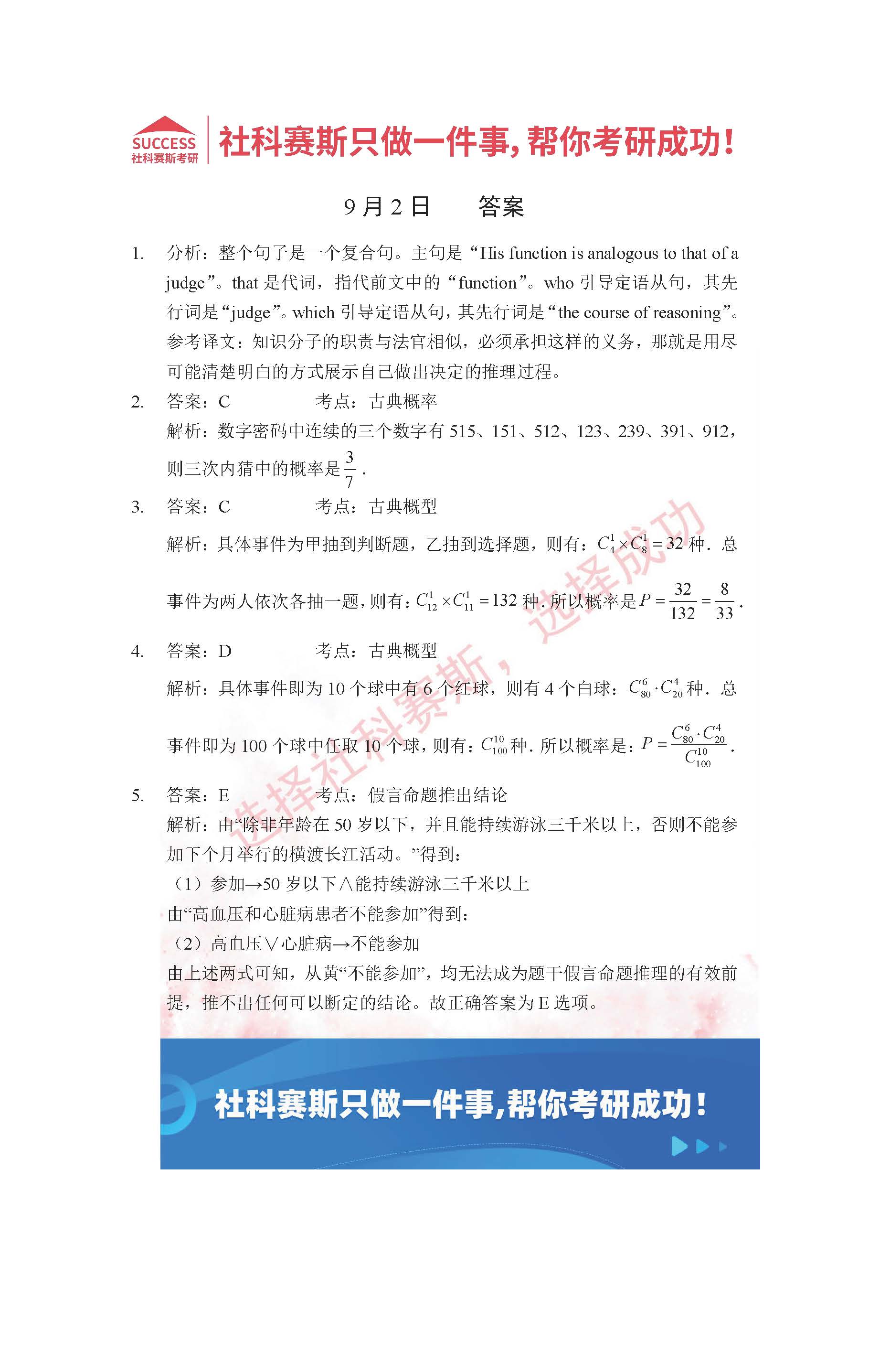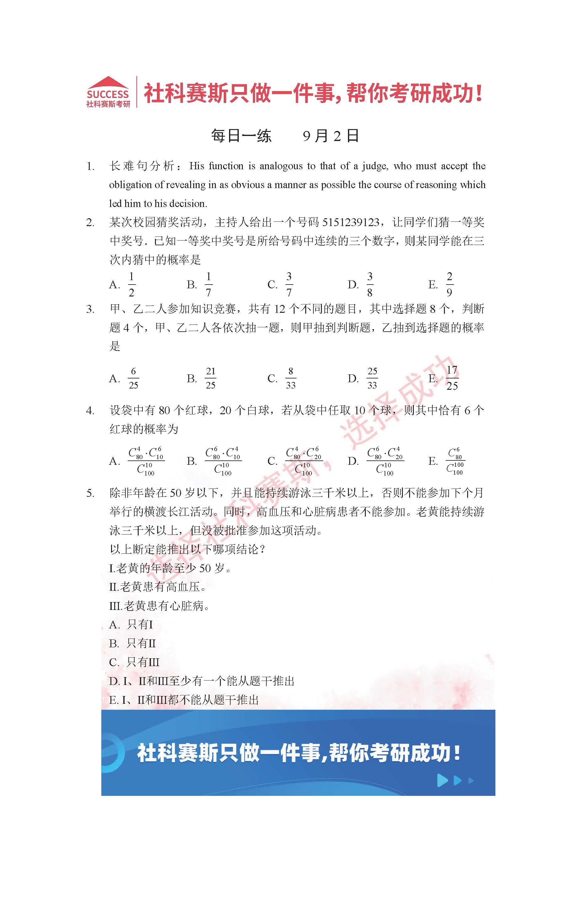 以上就是社科賽斯考研網小編為大家整理2022考研每日一練:9月2日管理類聯考每日一練及答案的全部內容,希望各位考生堅持利用起來,更多每日一練內容請持續關注社科賽斯考研網