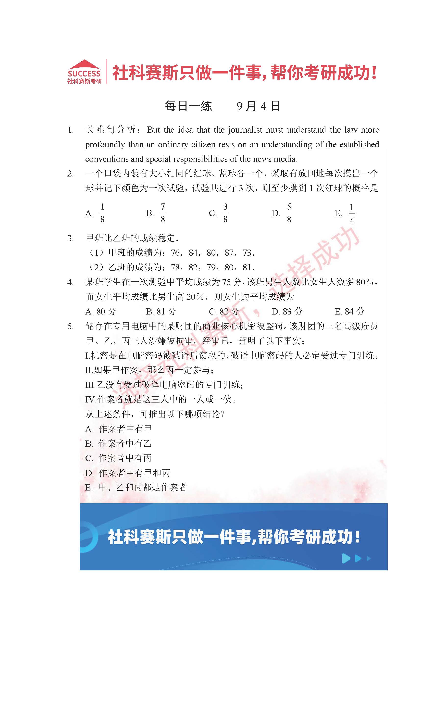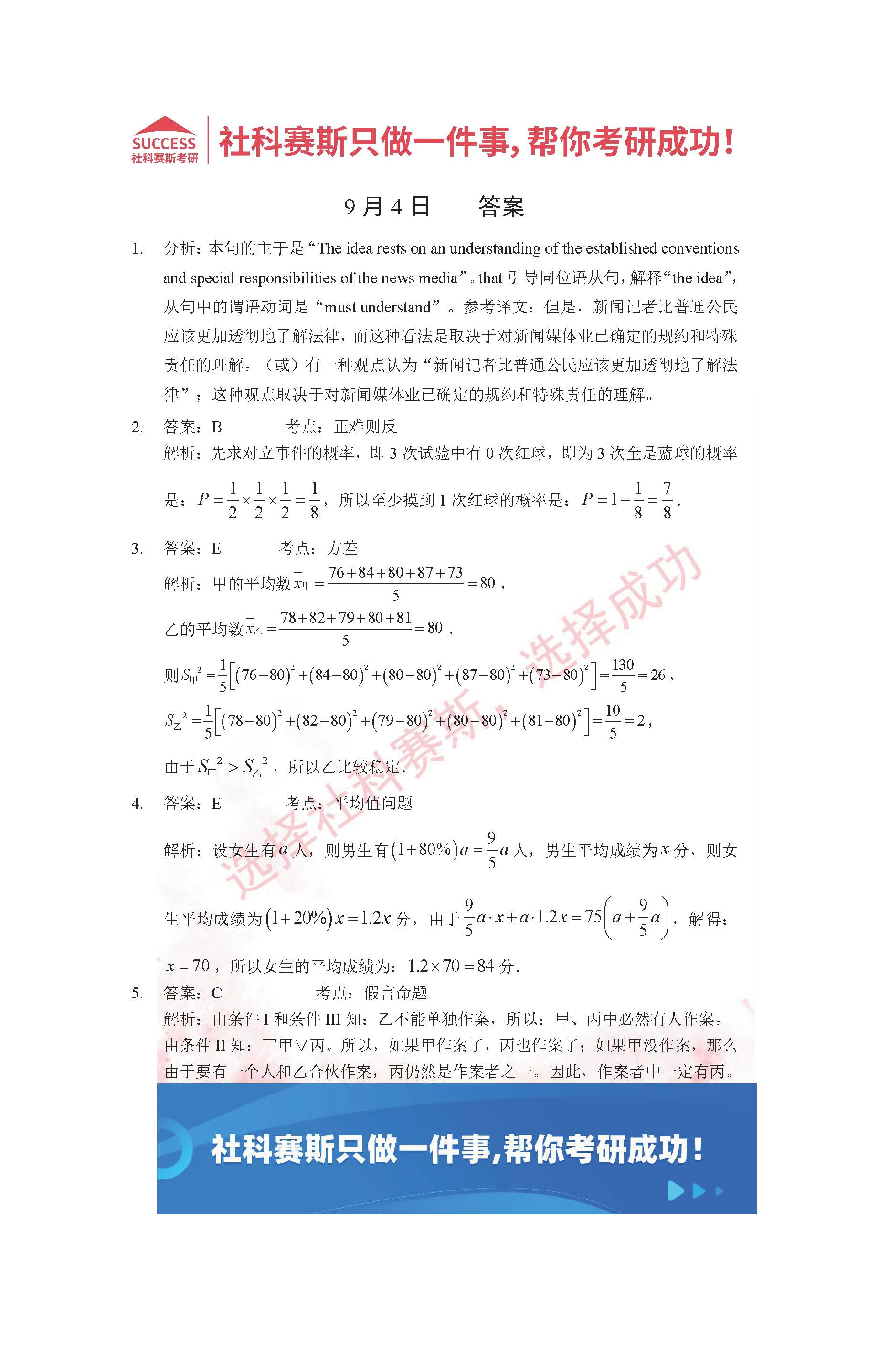 以上就是社科賽斯考研網小編為大家整理2022考研每日一練:9月4日管理類聯考每日一練及答案的全部內容,希望各位考生堅持利用起來,更多每日一練內容請持續關注社科賽斯考研網