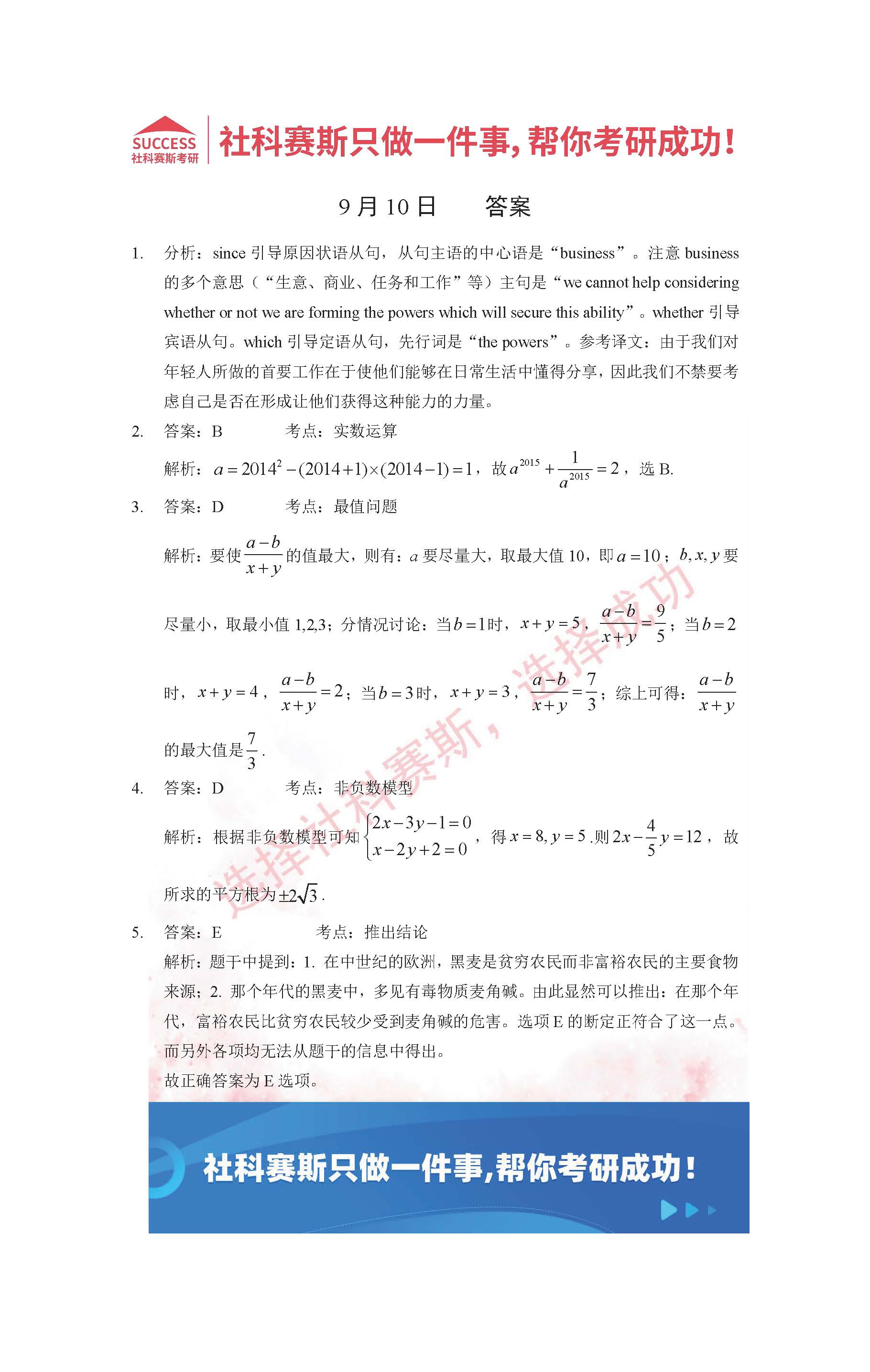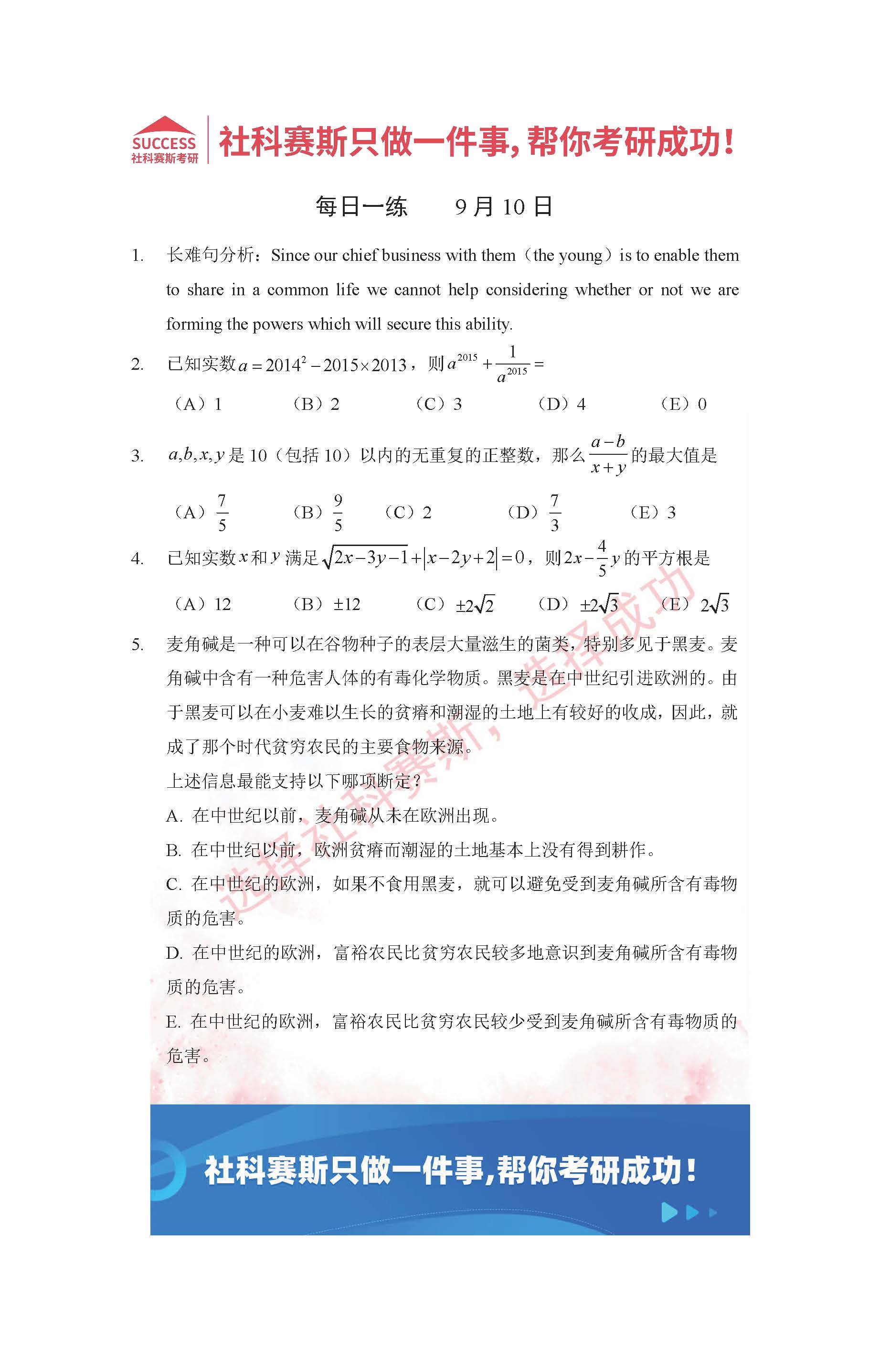 以上就是社科賽斯考研網小編為大家整理2022考研每日一練:9月10日管理類聯考每日一練及答案的全部內容,希望各位考生堅持利用起來,更多每日一練內容請持續關注社科賽斯考研網。