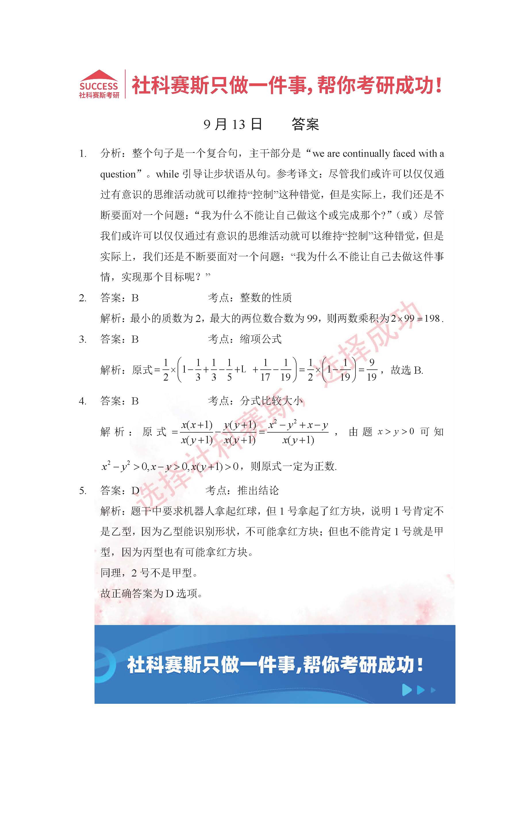 以上就是社科賽斯考研網小編為大家整理2022考研每日一練:9月13日管理類聯考每日一練及答案的全部內容,希望各位考生堅持利用起來,更多每日一練內容請持續關注社科賽斯考研網