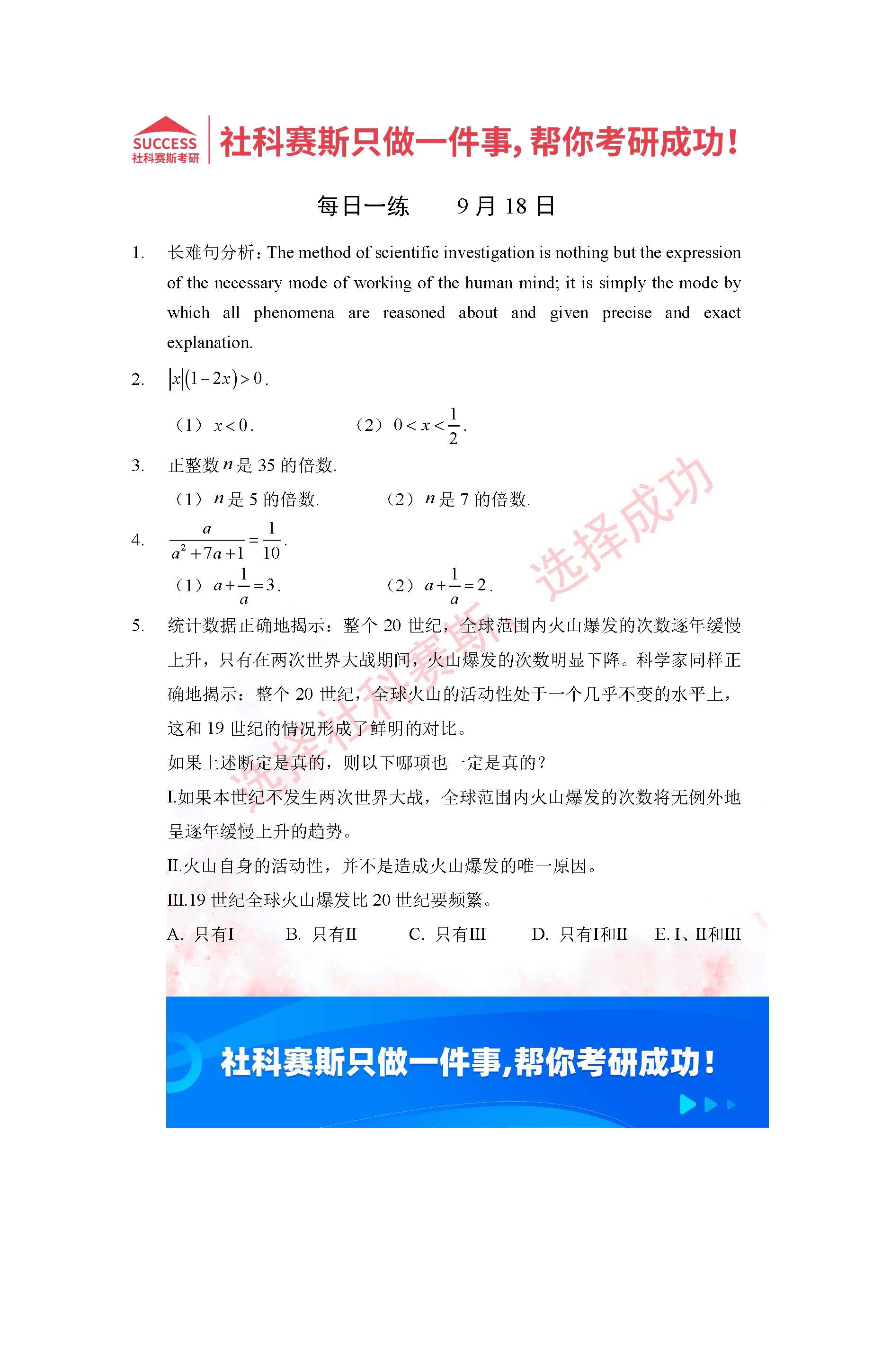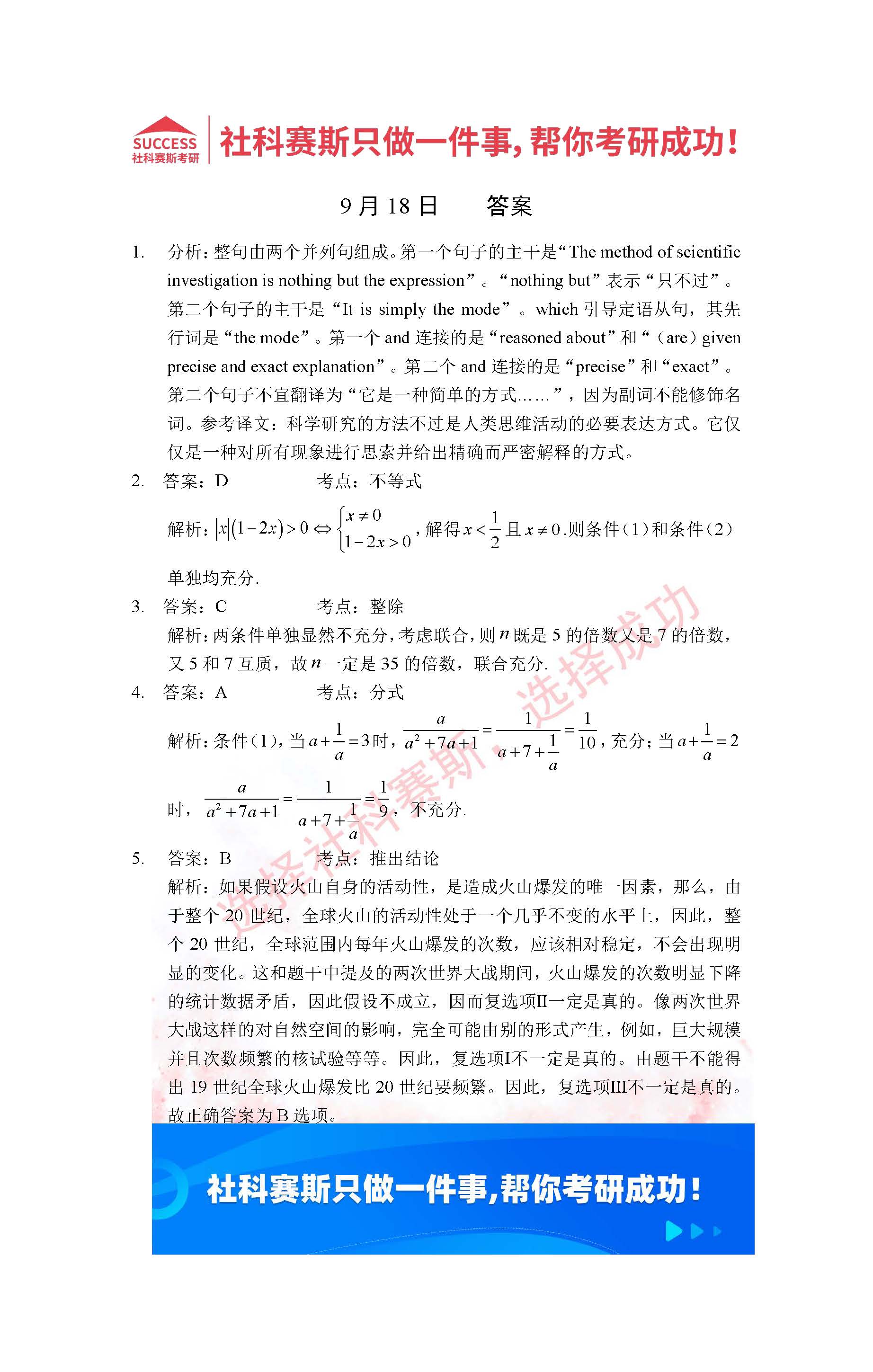 以上就是社科賽斯考研網(wǎng)小編為大家整理2022考研每日一練:9月18日管理類聯(lián)考每日一練及答案的全部內(nèi)容,希望各位考生堅(jiān)持利用起來,更多每日一練內(nèi)容請(qǐng)持續(xù)關(guān)注社科賽斯考研網(wǎng)