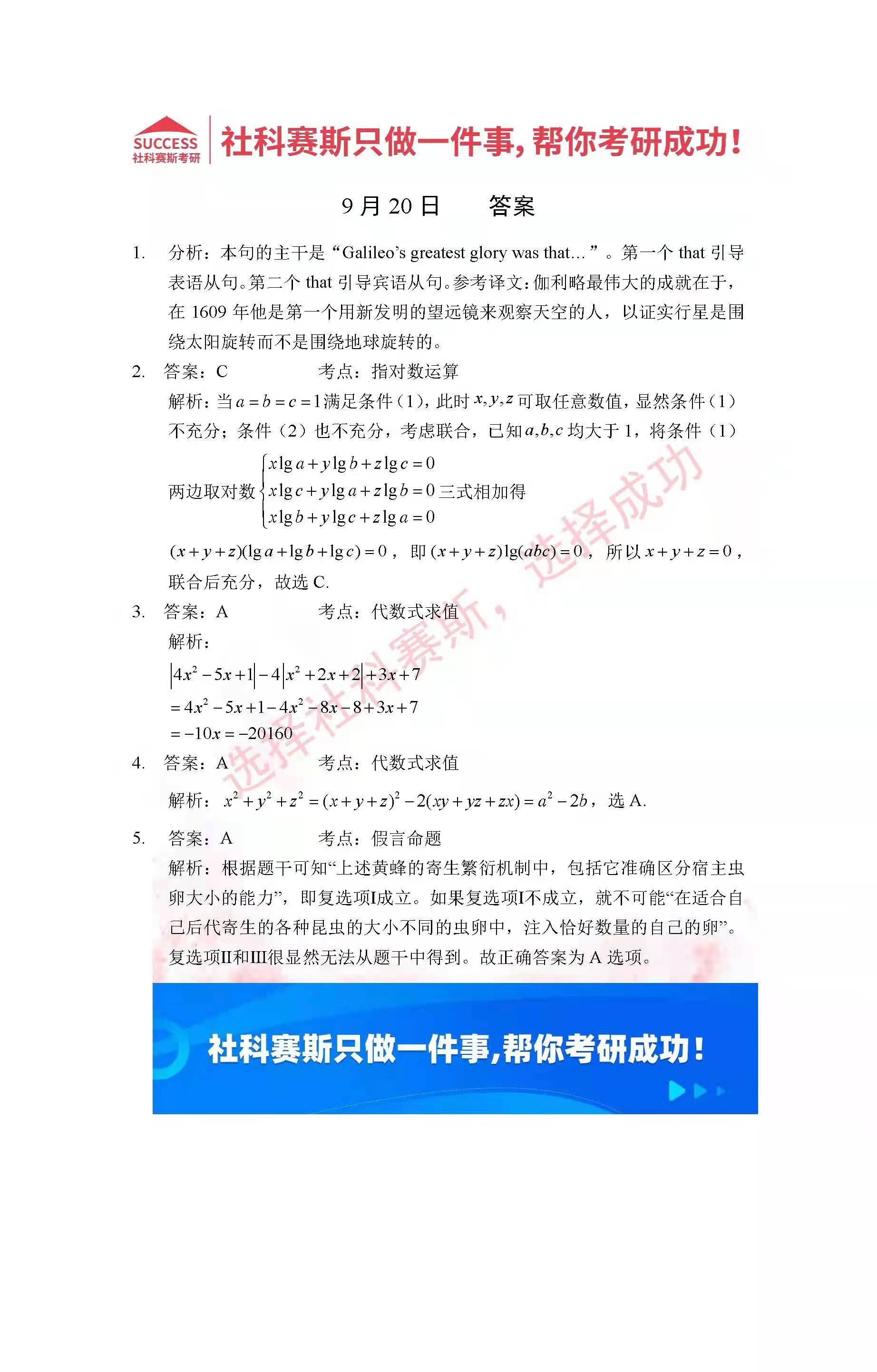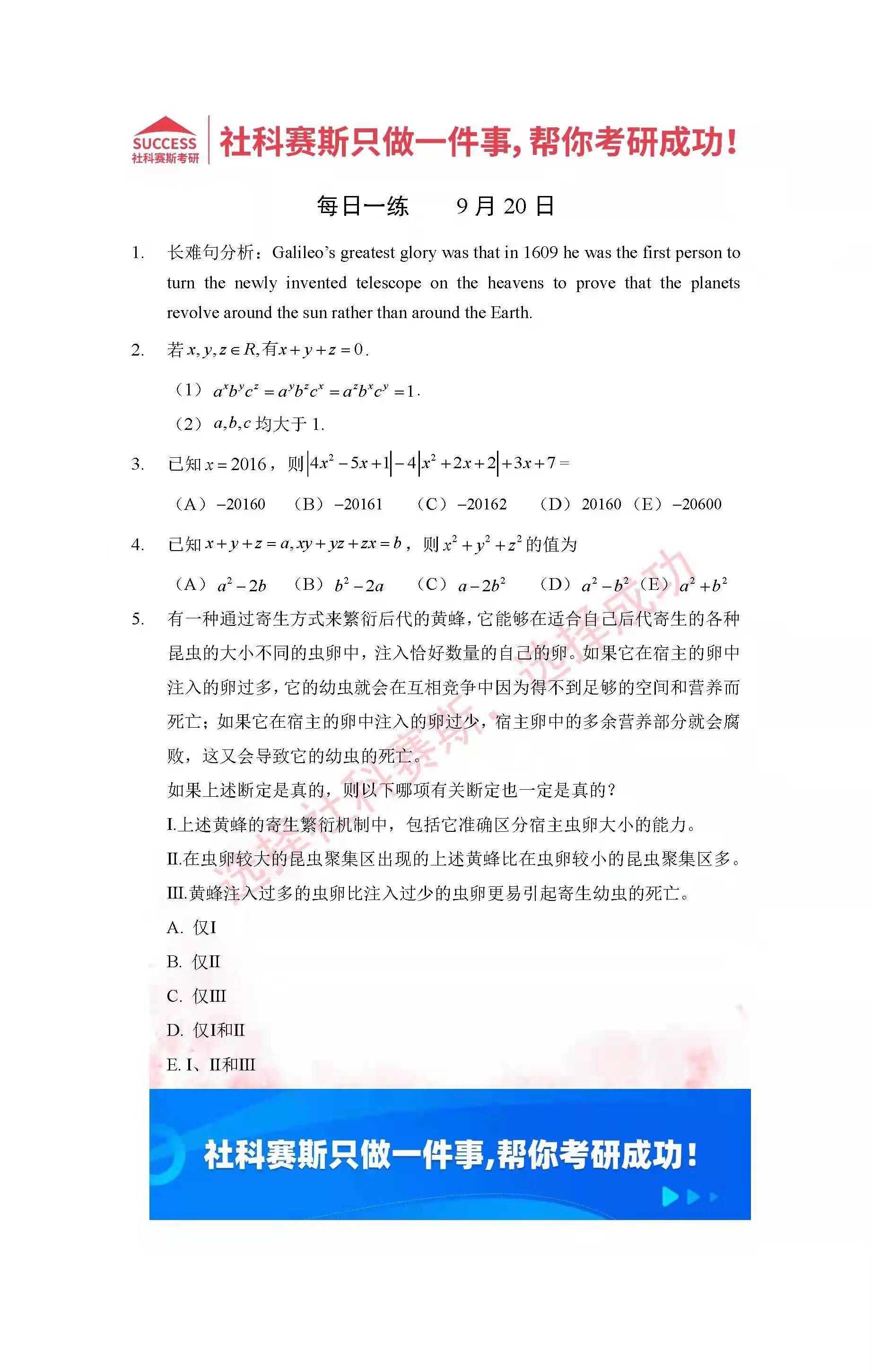 以上就是社科賽斯考研網(wǎng)小編為大家整理2022考研每日一練:9月20日管理類聯(lián)考每日一練及答案的全部內容,希望各位考生堅持利用起來,更多每日一練內容請持續(xù)關注社科賽斯考研網(wǎng)