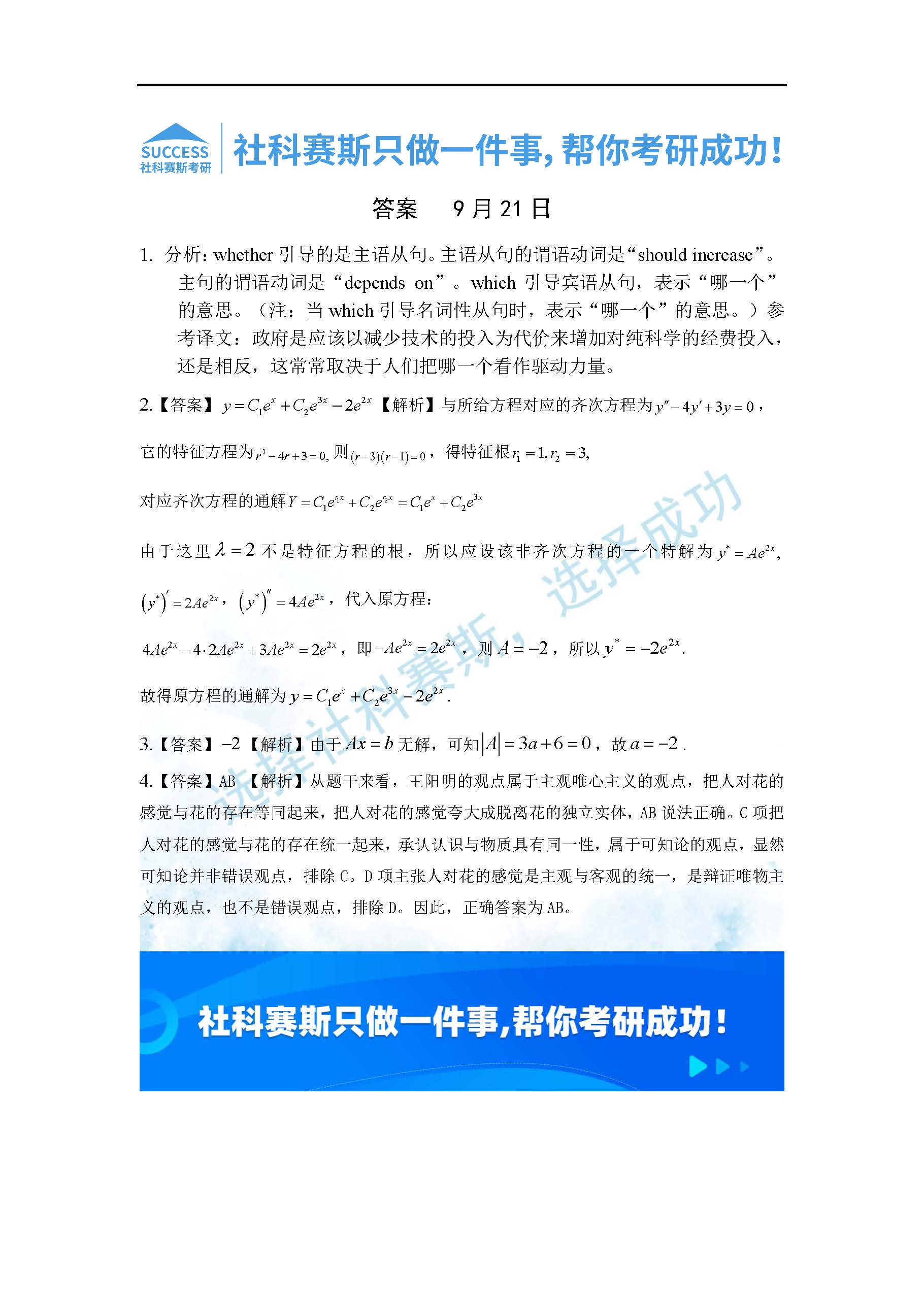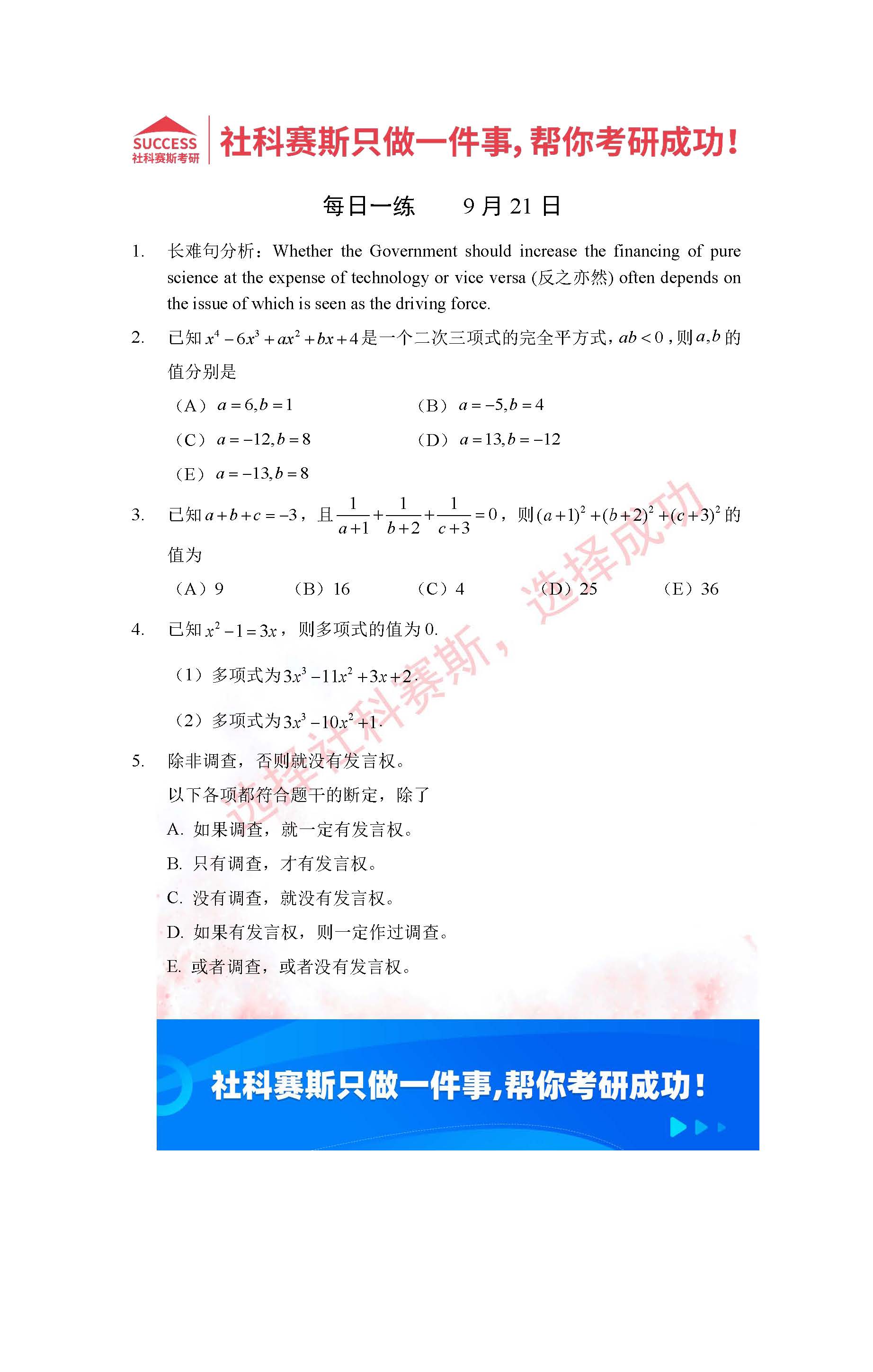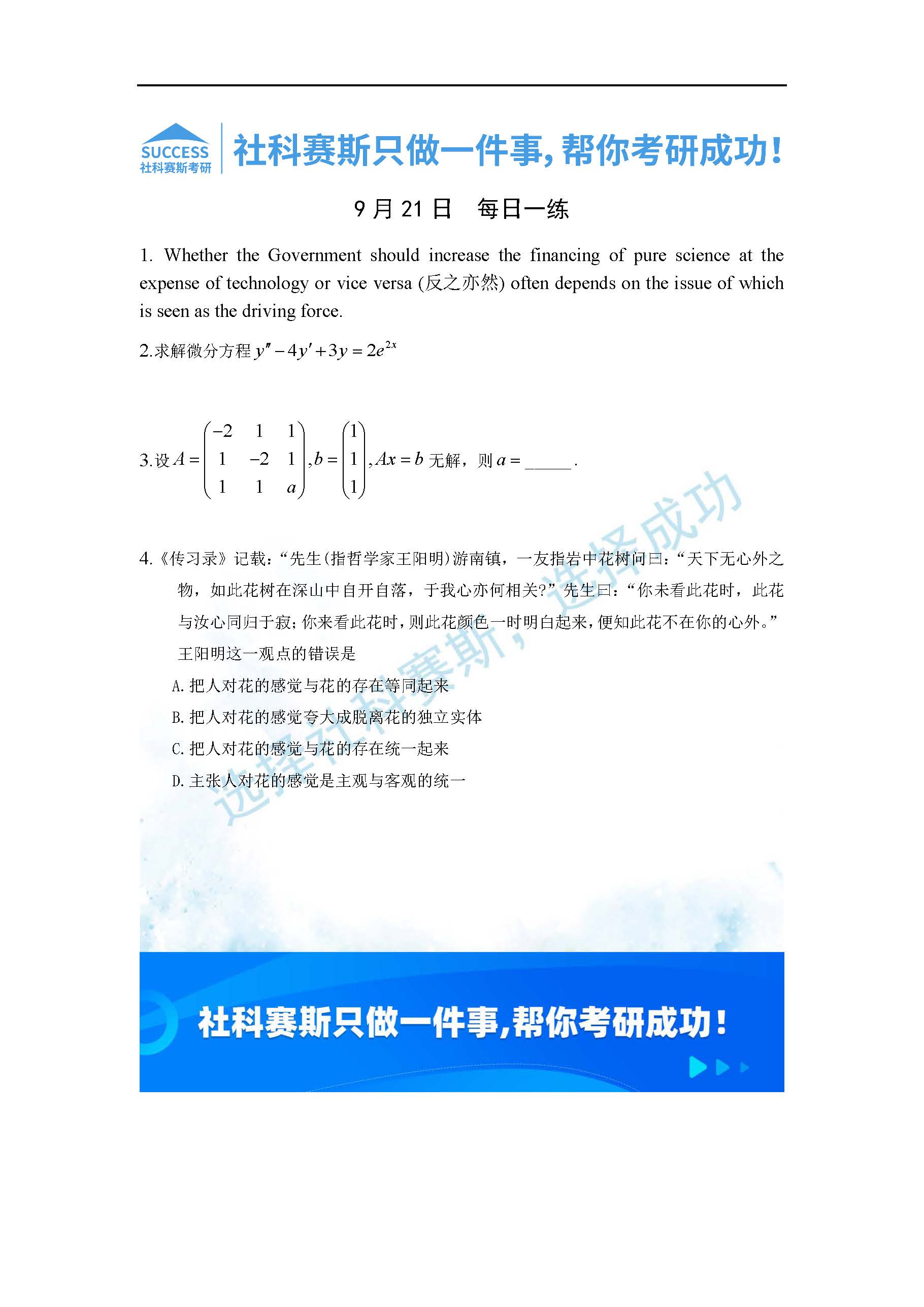 以上就是社科賽斯考研網小編為大家整理2022考研每日一練:9月21日管理類聯考每日一練及答案的全部內容,希望各位考生堅持利用起來,更多每日一練內容請持續關注社科賽斯考研網