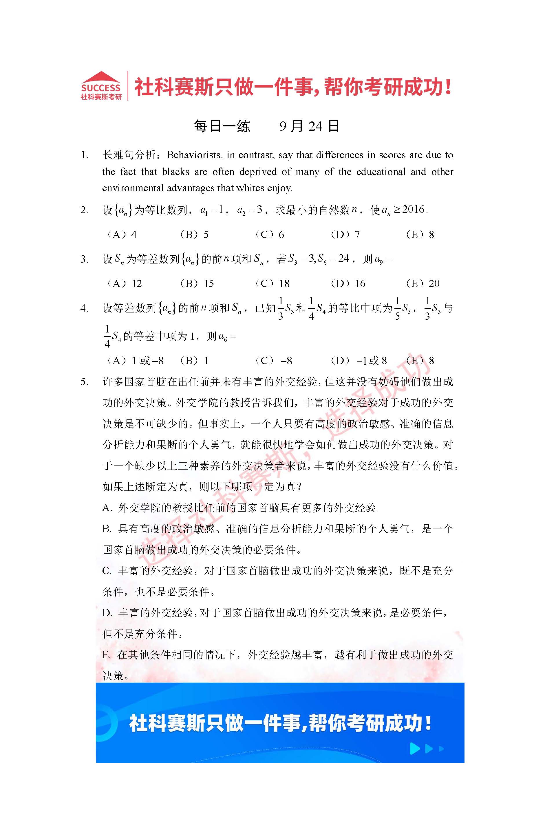 以上就是社科賽斯考研網小編為大家整理2022考研每日一練:9月24日管理類聯考每日一練及答案的全部內容,希望各位考生堅持利用起來,更多每日一練內容請持續關注社科賽斯考研網