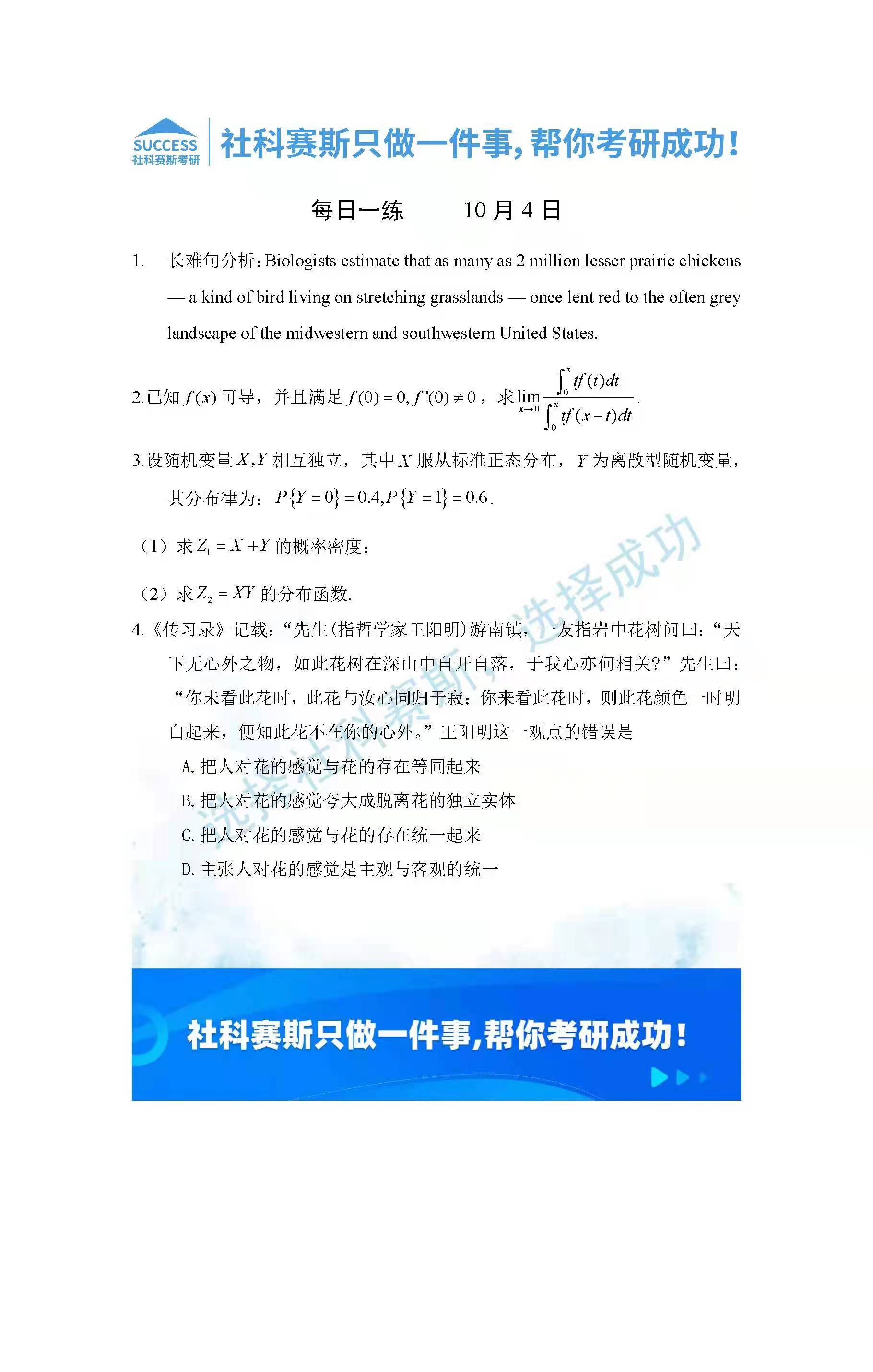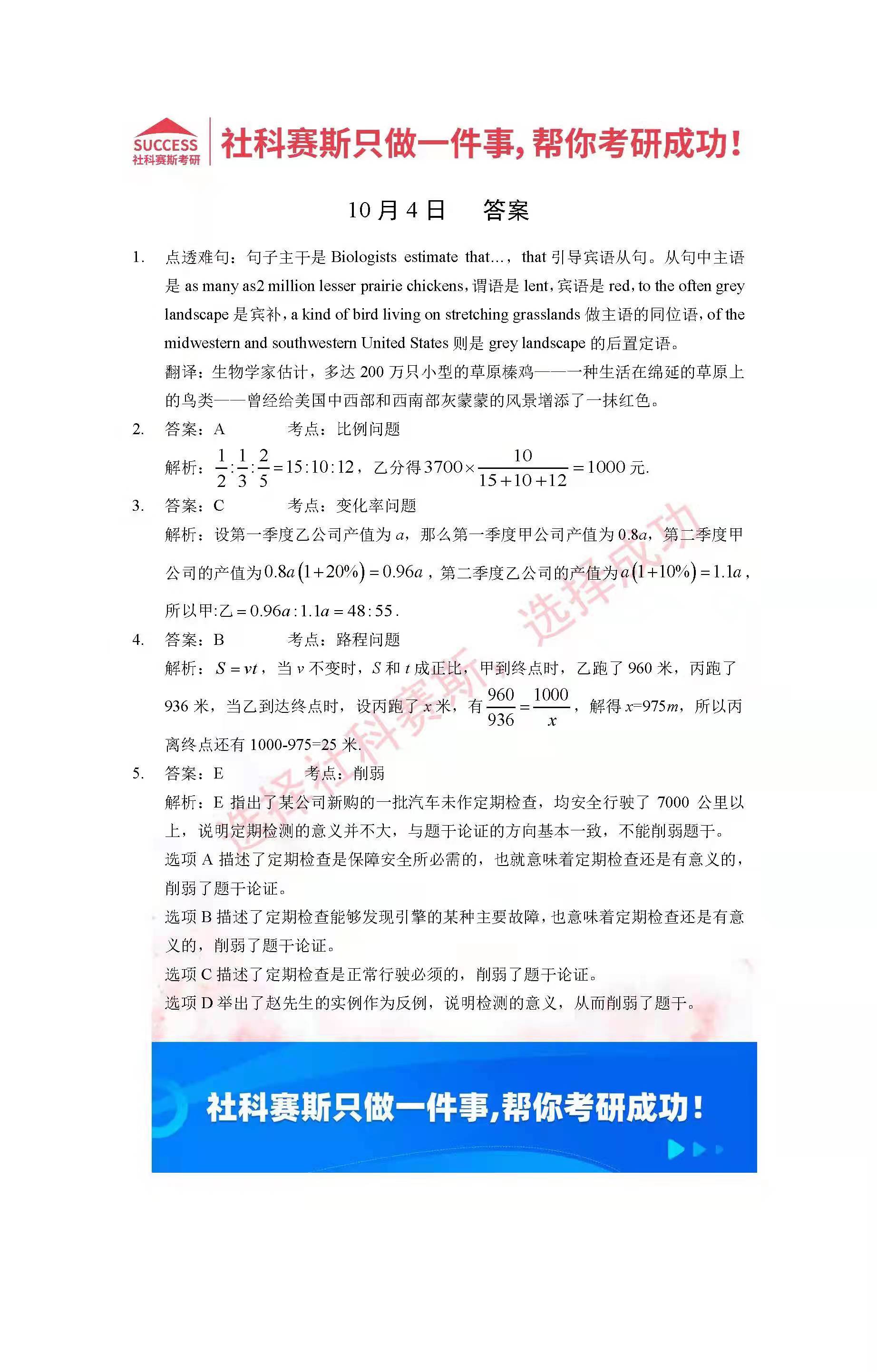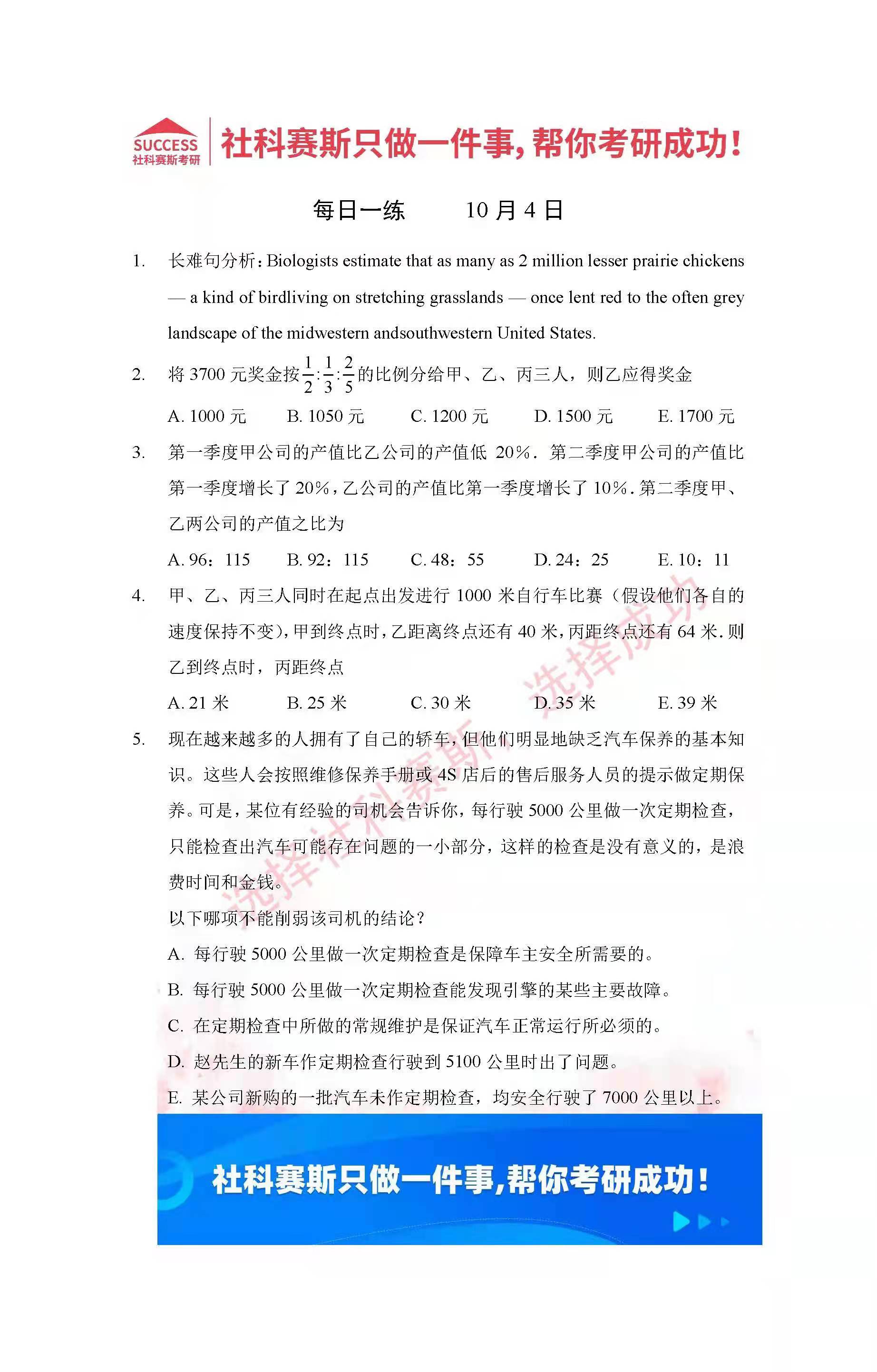 以上就是社科賽斯考研網小編為大家整理2022考研每日一練:10月4日管理類聯考每日一練及答案的全部內容,希望各位考生堅持利用起來,更多每日一練內容請持續關注社科賽斯考研網
