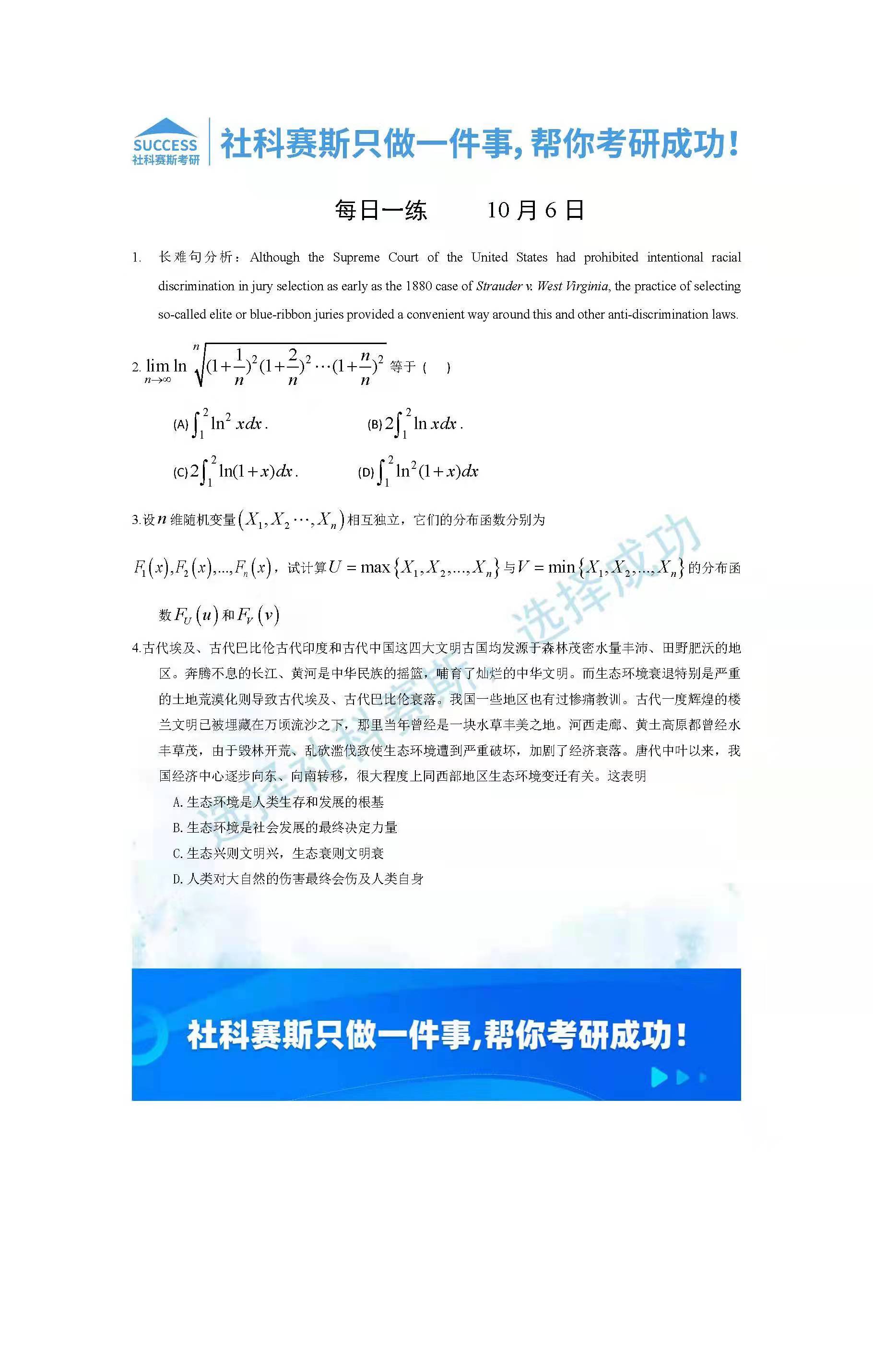 以上就是社科賽斯考研網小編為大家整理2022考研每日一練:10月6日管理類聯考每日一練及答案的全部內容,希望各位考生堅持利用起來,更多每日一練內容請持續關注社科賽斯考研網。
