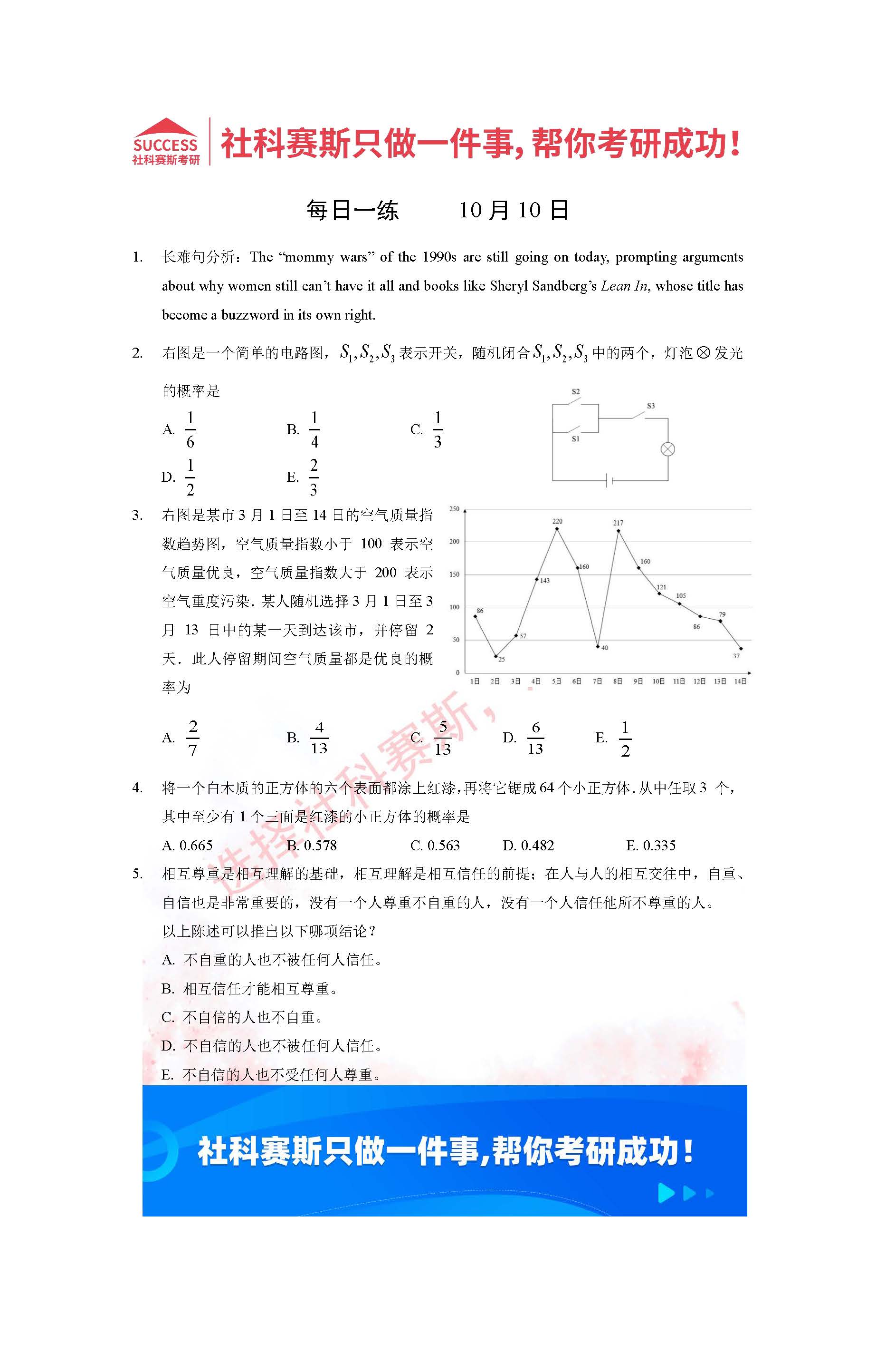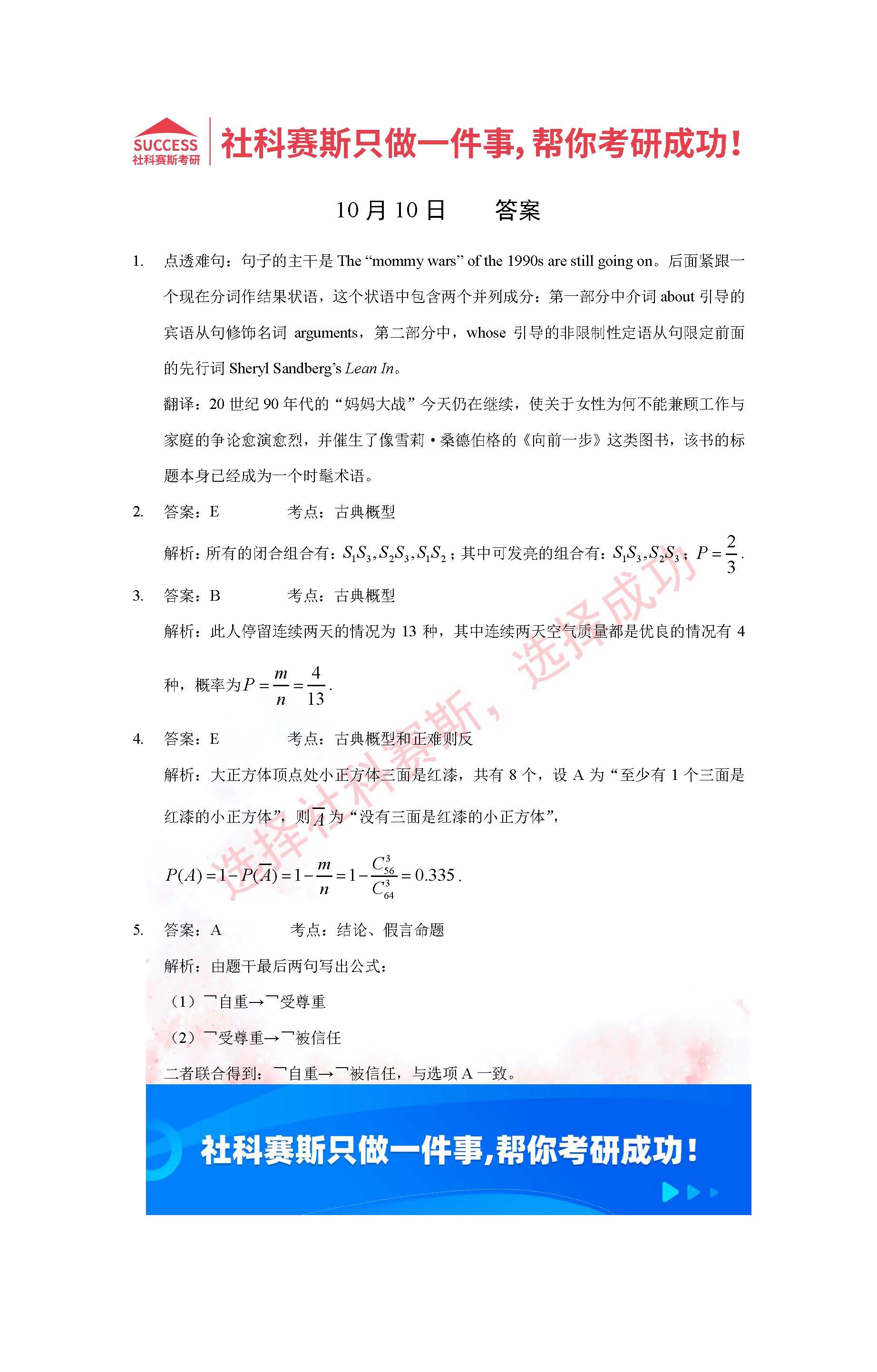 以上就是社科賽斯考研網小編為大家整理2022考研每日一練:10月10日管理類聯考每日一練及答案的全部內容,希望各位考生堅持利用起來,更多每日一練內容請持續關注社科賽斯考研網