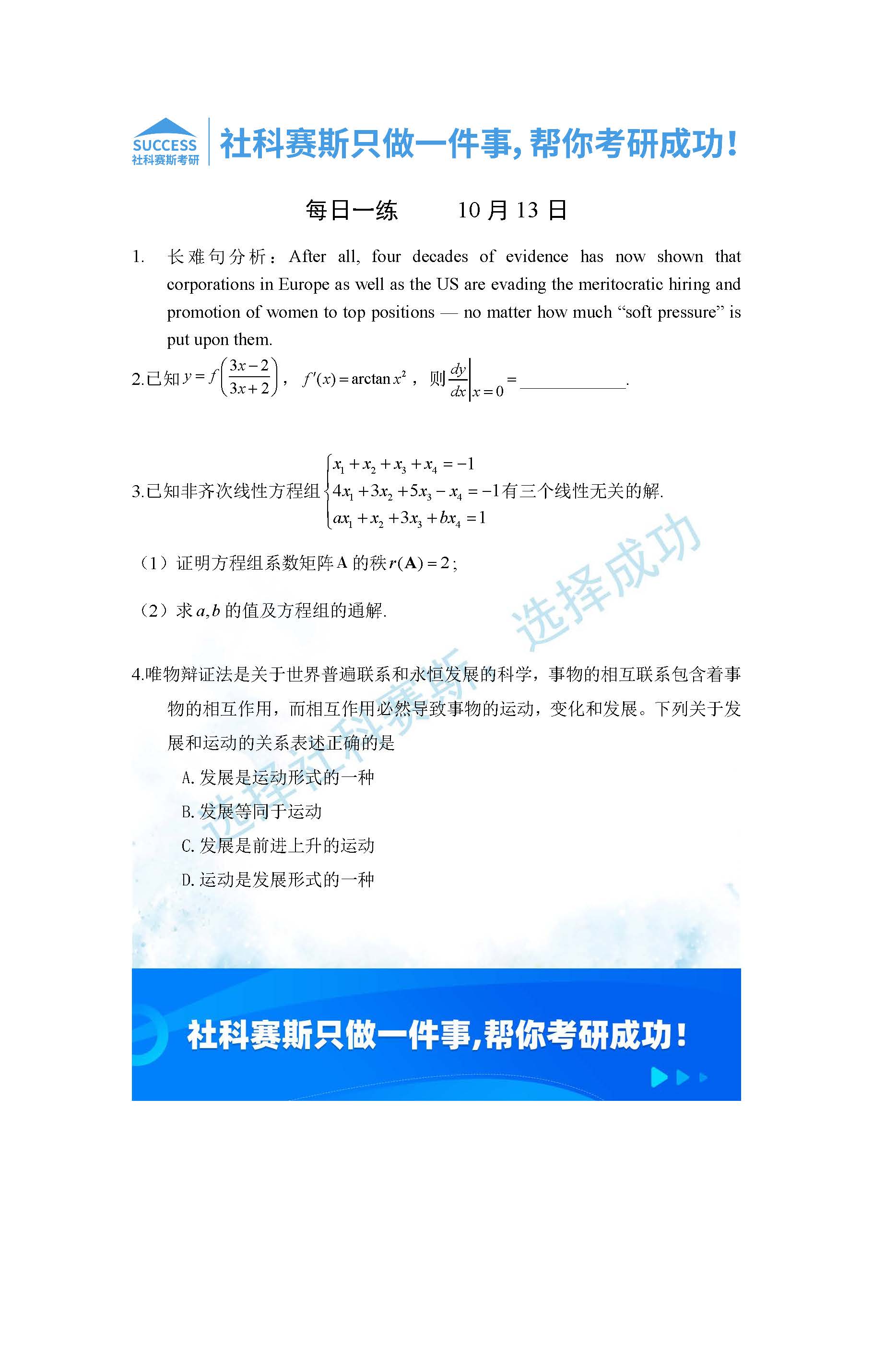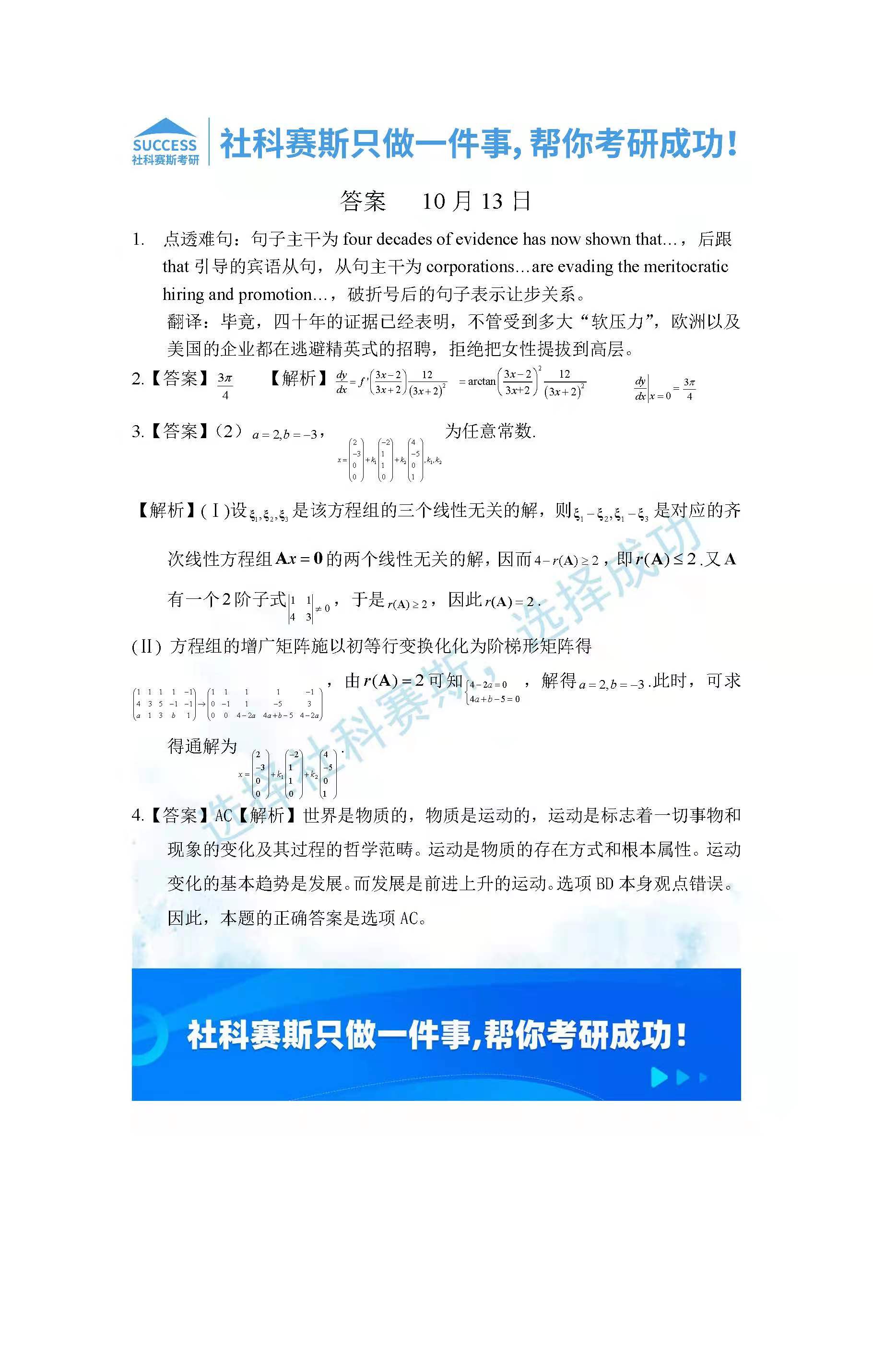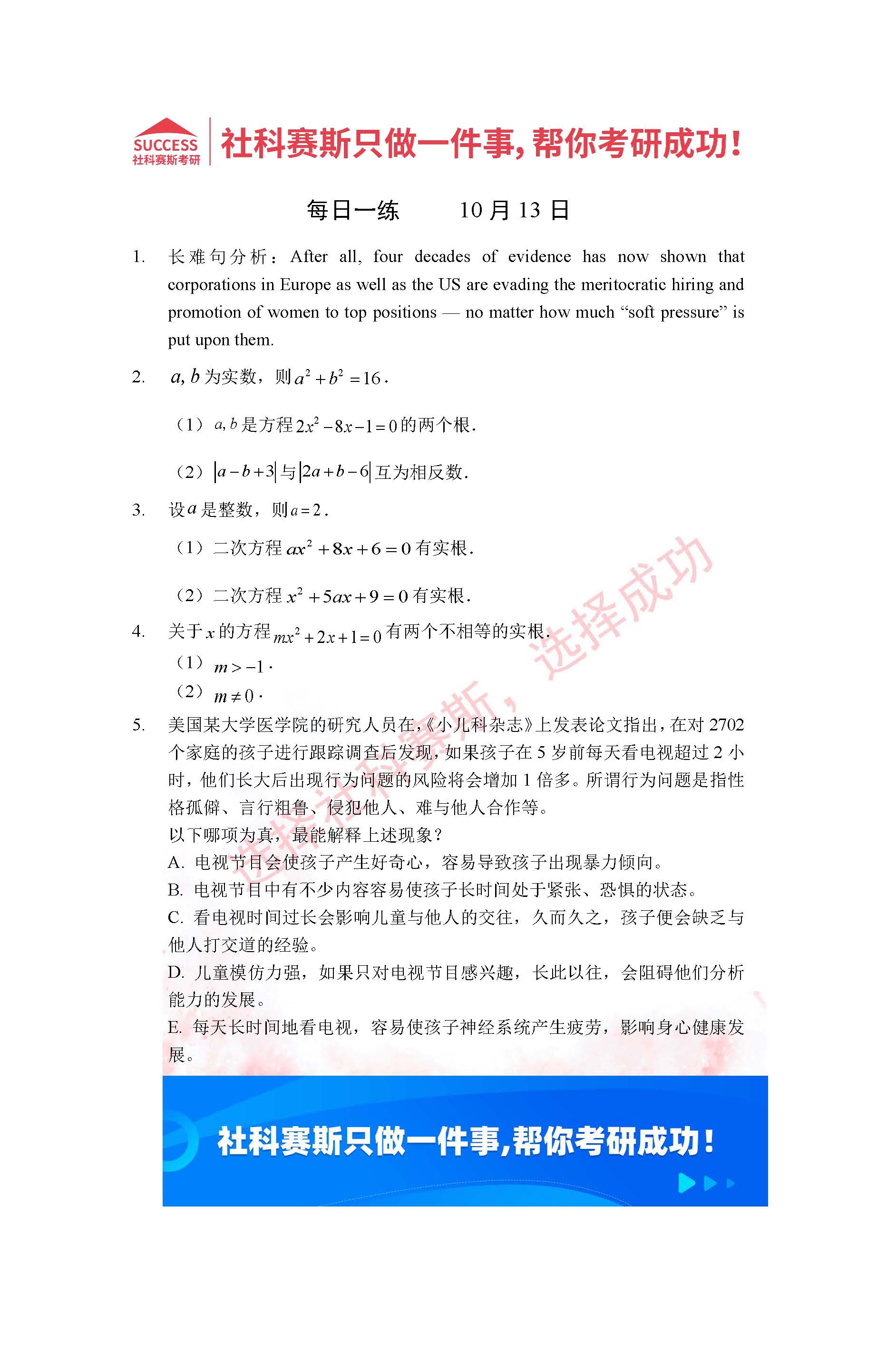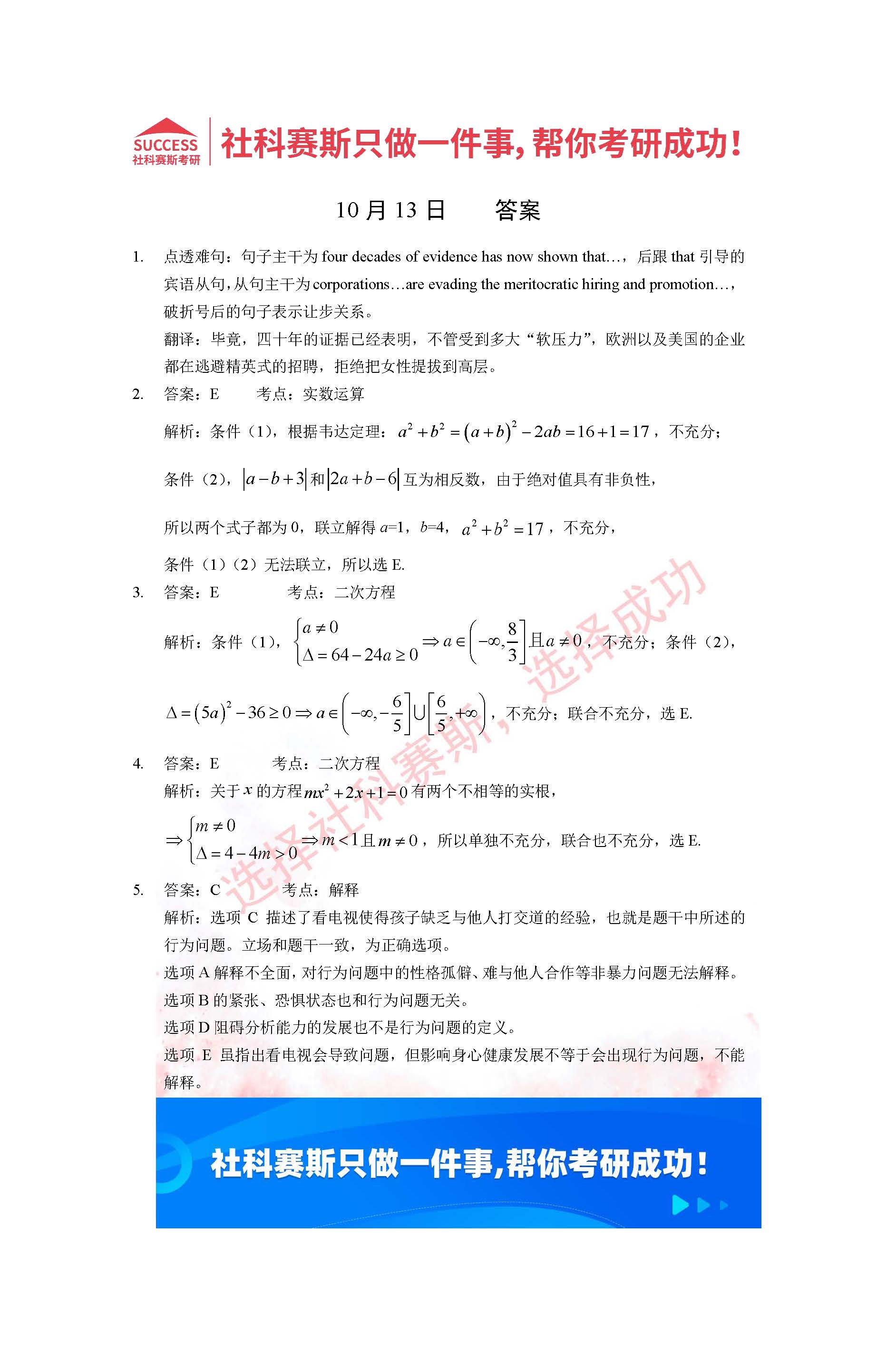 以上就是社科賽斯考研網小編為大家整理2022考研每日一練:10月13日管理類聯考每日一練及答案的全部內容,希望各位考生堅持利用起來,更多每日一練內容請持續關注社科賽斯考研網