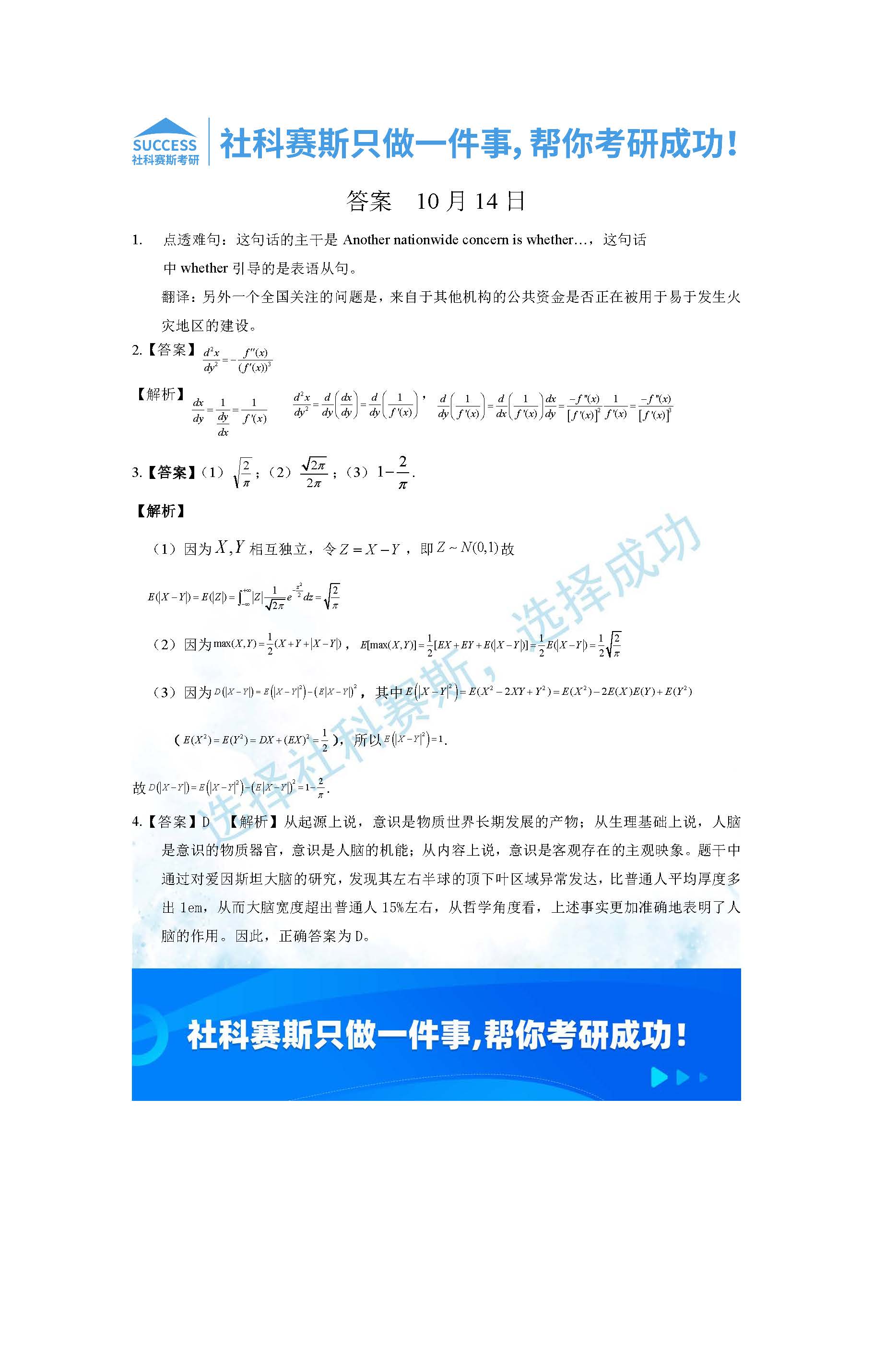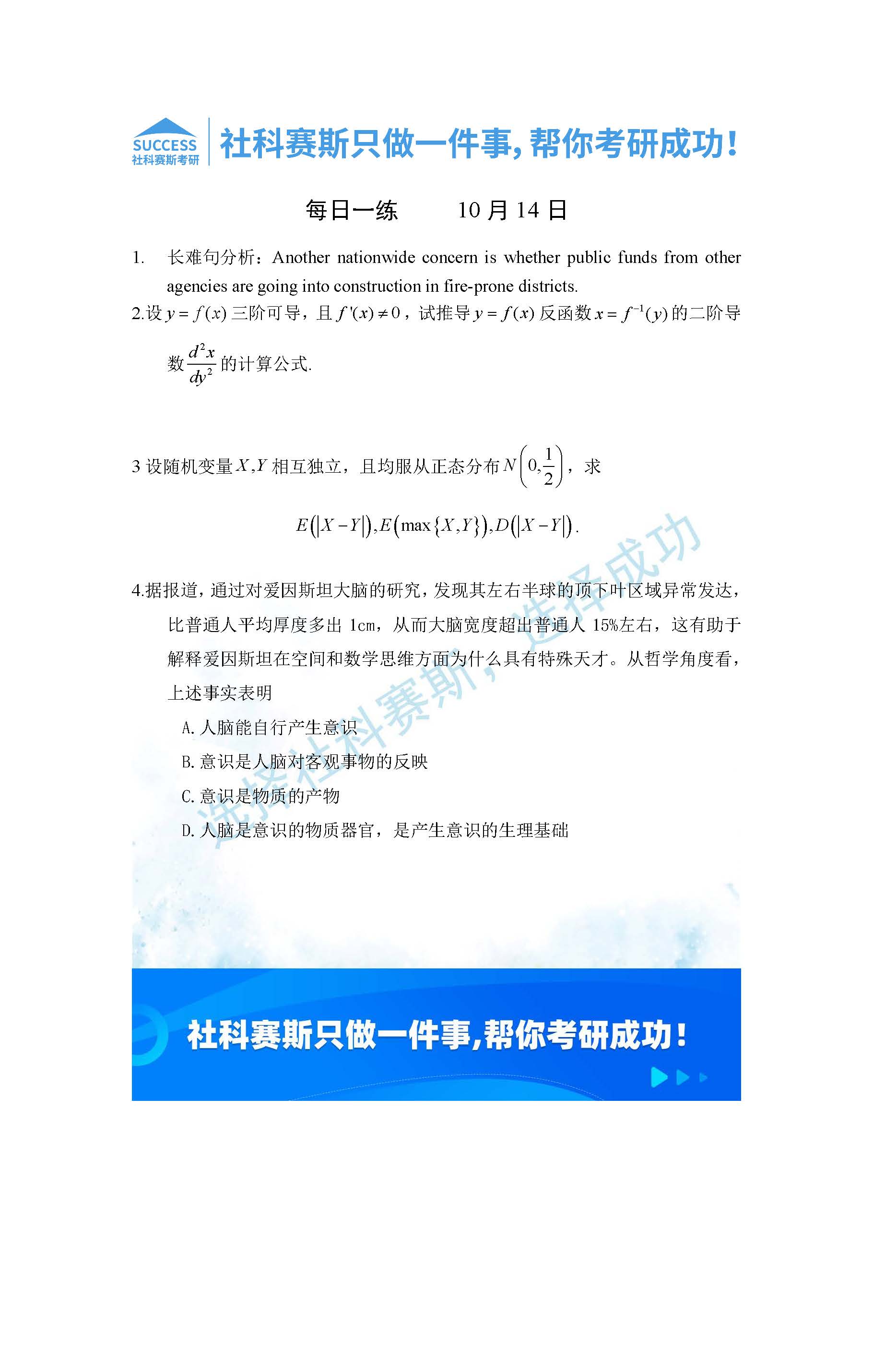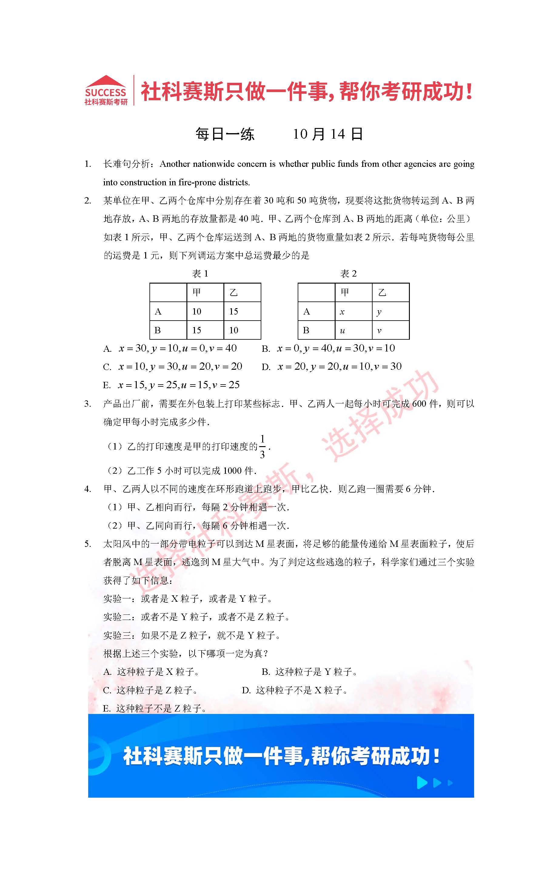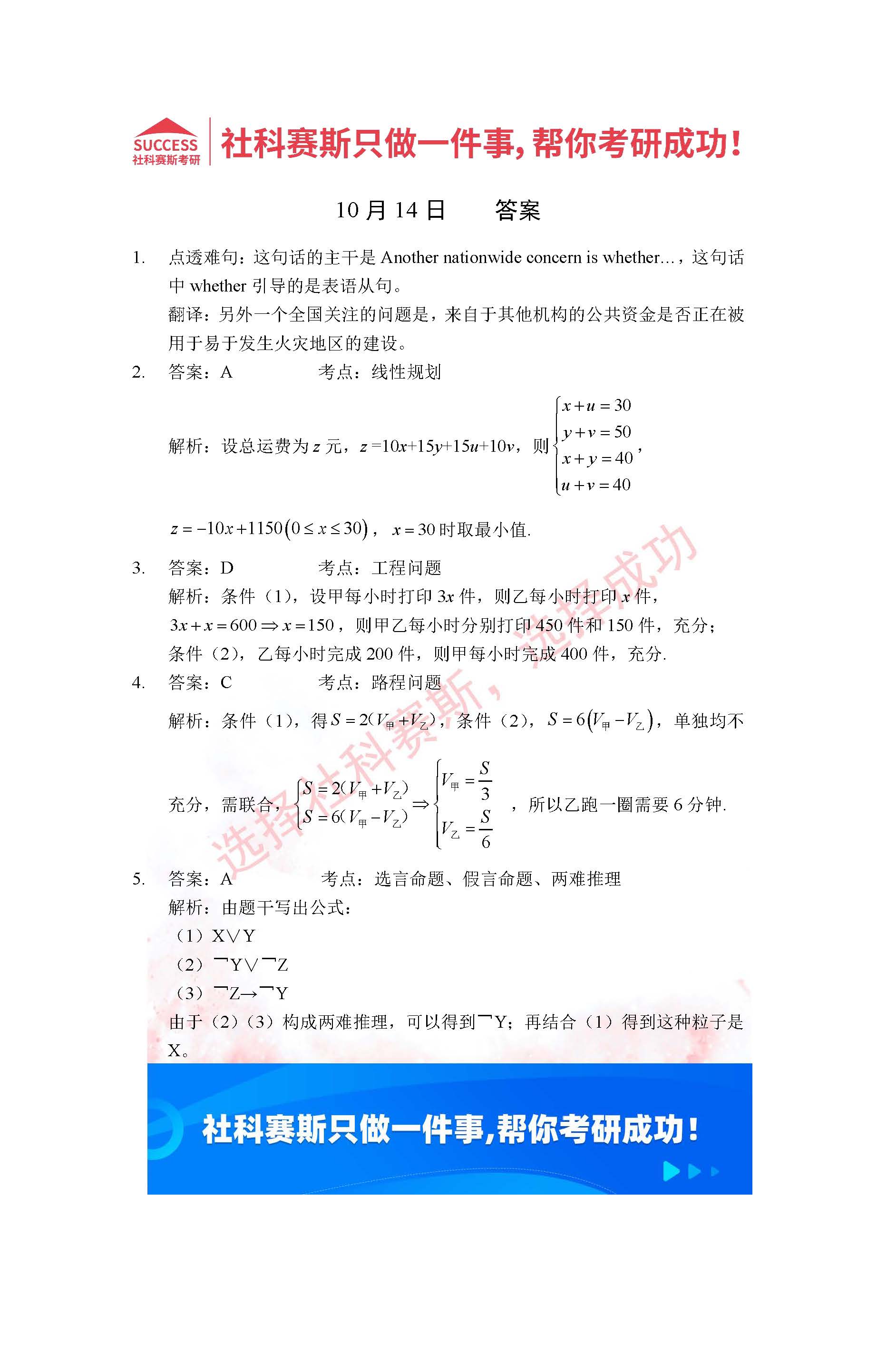 以上就是社科賽斯考研網小編為大家整理2022考研每日一練:10月14日管理類聯考每日一練及答案的全部內容,希望各位考生堅持利用起來,更多每日一練內容請持續關注社科賽斯考研網