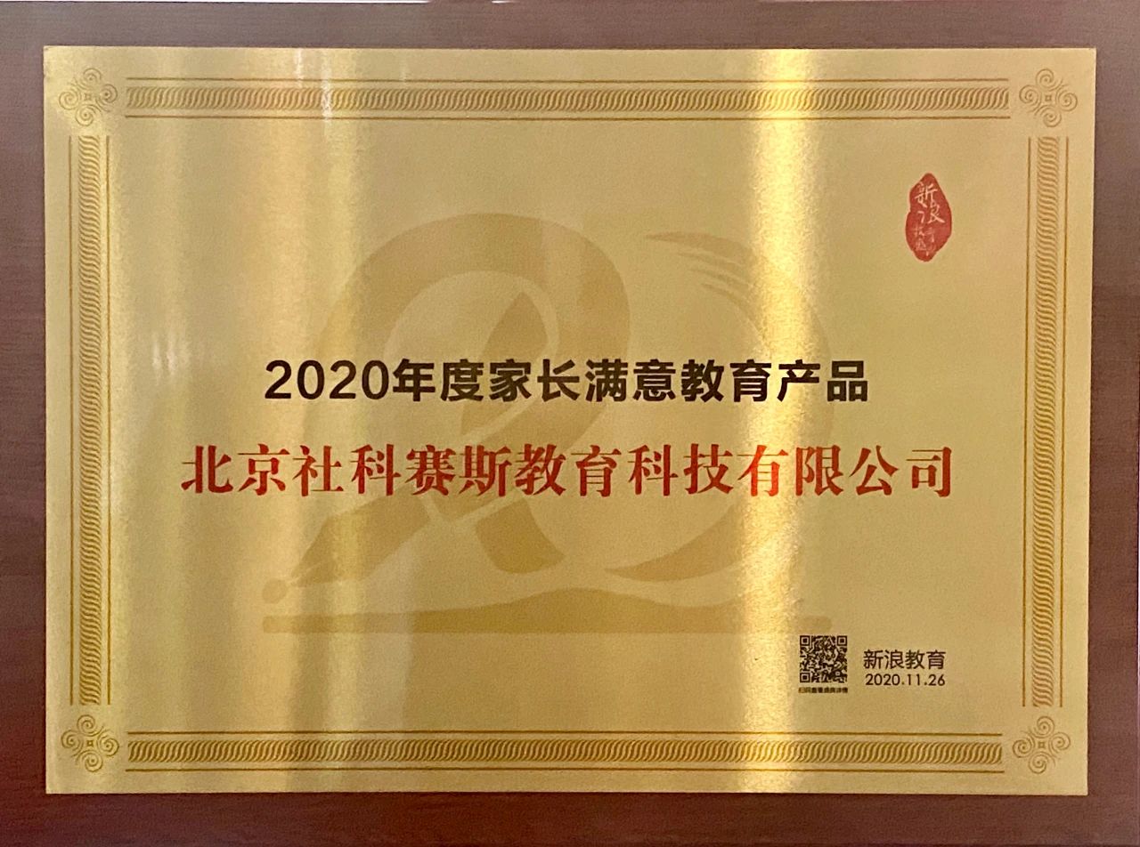 社科賽斯榮獲“2020年度家長滿意教育產品”獎項