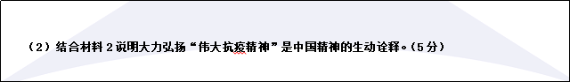 題目:(1)中國抗疫精神是中國精神的生動詮釋,“全國人民都在為‘武漢熱干面加油’,其中體現(xiàn)了什么樣的中國精神?