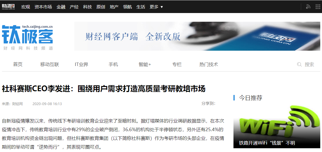以上就是“財經網 | 社科賽斯CEO李發進:圍繞用戶需求打造高質量考研教培市場”的全部內容了,更多資訊,請持續關注社科賽斯考研網!