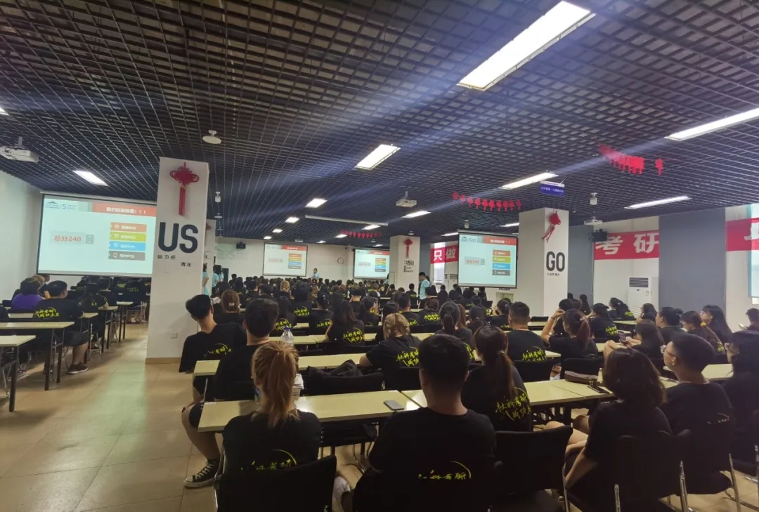 社科賽斯集訓營學員一起,起立握拳宣誓!口號洪亮、語氣果敢、神情堅定,反映了同學們對考研必勝的把握和決心。