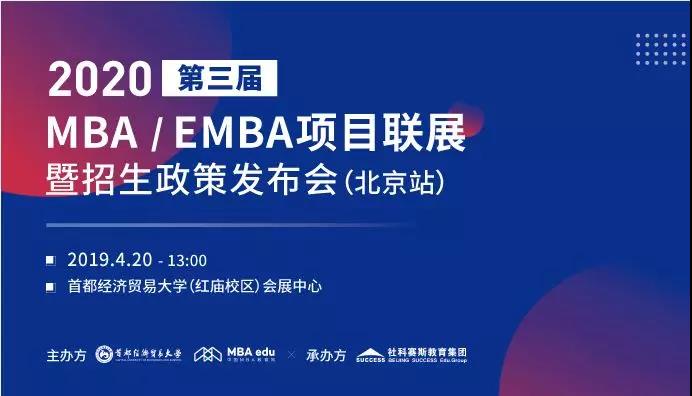 4月20日,MBA網將攜手首都經濟貿易大學MBA教育中心,聯合全國30所商學院主辦第三屆MBA教育展暨2020招生政策發布會(北京站),屆時各優秀商學院MBA招生辦主任親臨現場,為廣大考生提供真實、實用的報考新政策,3小時揭開全國知名商學院MBA項目“神秘面紗”。