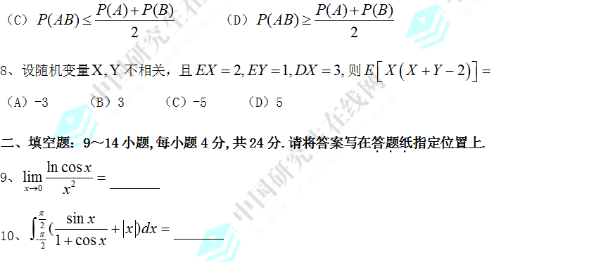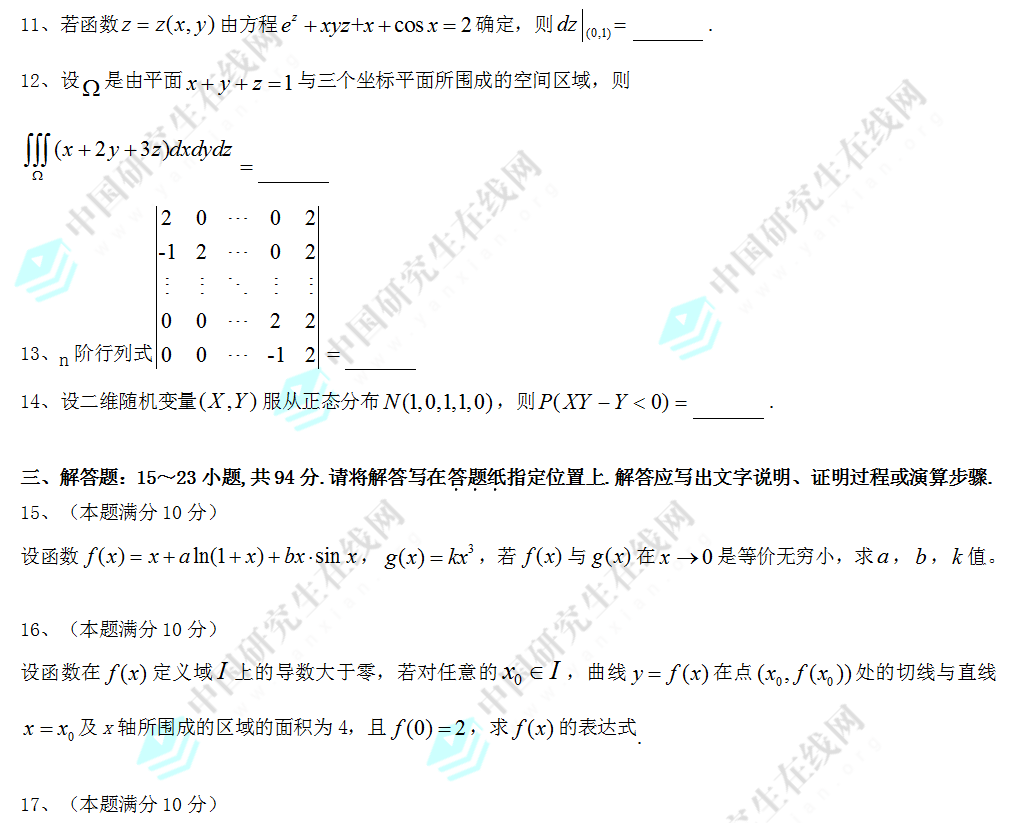 2015年全國碩士研究生入學統一考試數學(一)真題