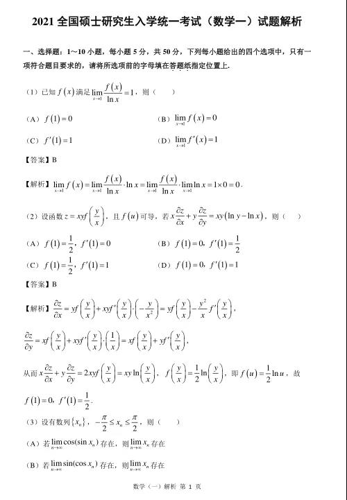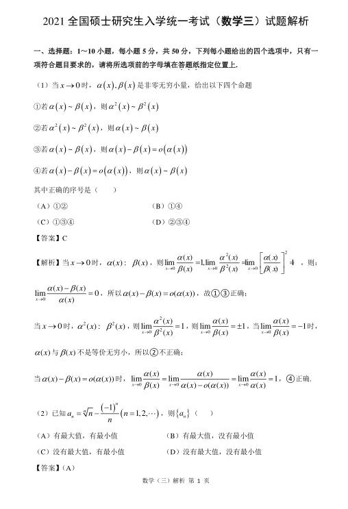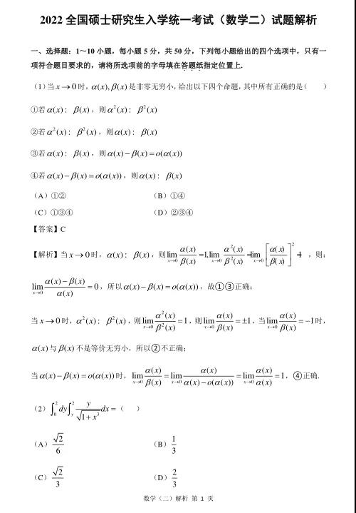 2022考研:22考研(數一、數二、數三、396數學)真題解析