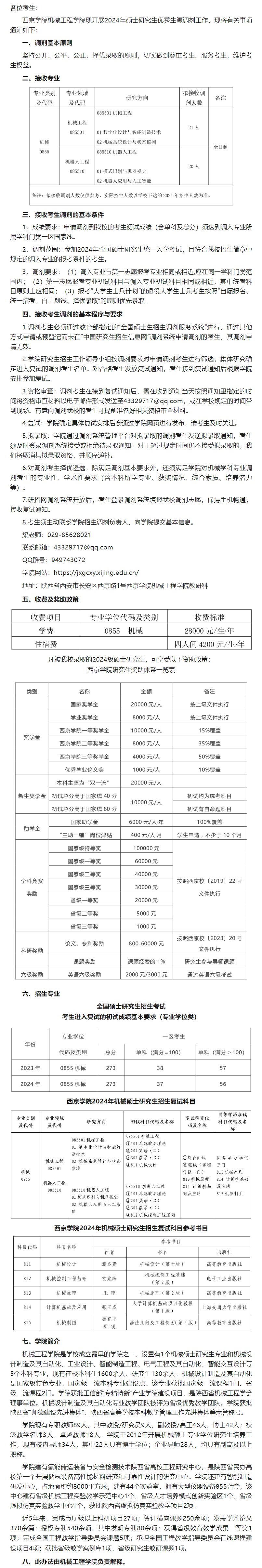 以上就是小編整理“2024考研調劑:西京學院機械工程學院2024年碩士研究生招生調劑公告”的全部內容,想了解更多調劑信息,請持續關注本網站。