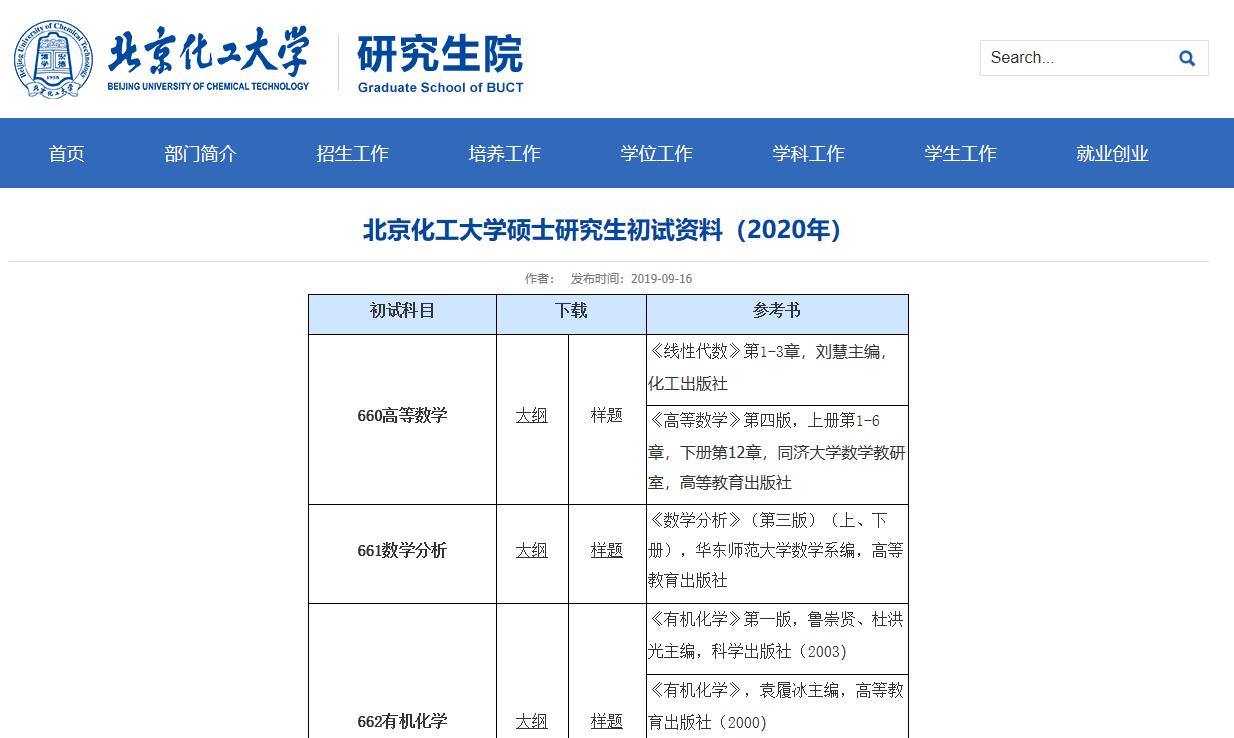 【點擊查看】北京化工大學碩士研究生初試資料(2020年)