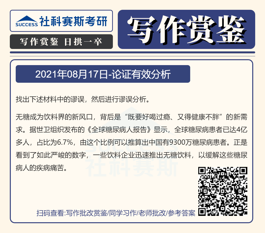 以上就是小編為大家整理“管理類聯(lián)考寫作備考:8月17日寫作鑒賞及答案”的全部內(nèi)容,希望各位考生堅(jiān)持利用起來,想要獲取更多內(nèi)容請(qǐng)持續(xù)關(guān)注社科塞斯考研網(wǎng)。