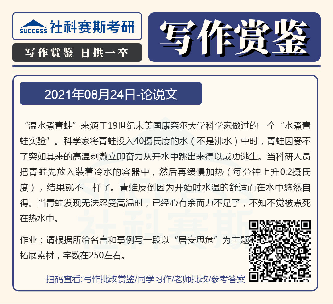 以上就是小編為大家整理“管理類聯考寫作備考:8月24日寫作鑒賞及答案”的全部內容,希望各位考生堅持利用起來,想要獲取更多內容請持續關注社科塞斯考研網。