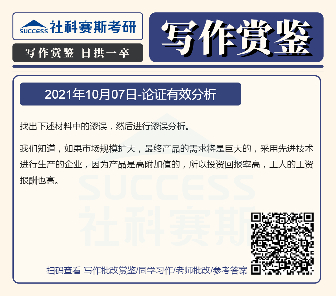 以上就是小編為大家整理“管理類聯考寫作備考:10月7日寫作鑒賞及答案”的全部內容,希望各位考生堅持利用起來,想要獲取更多內容請持續關注社科塞斯考研網。