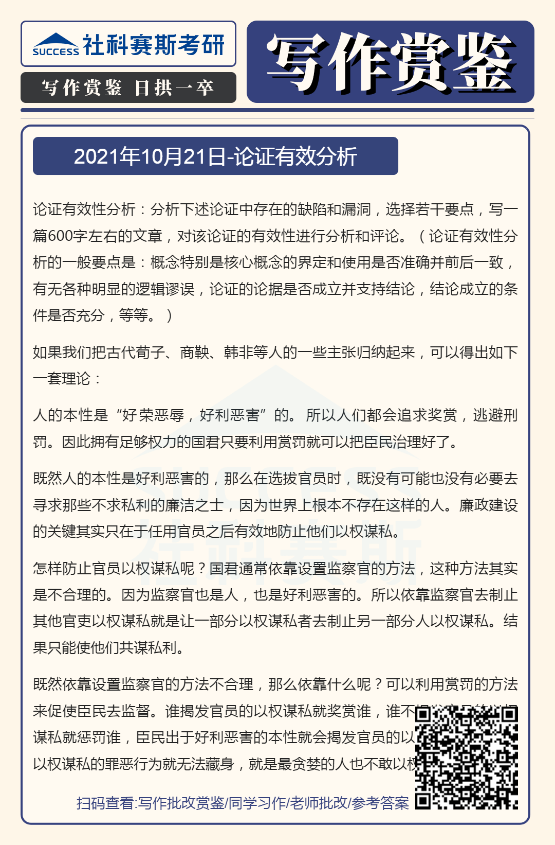 以上就是小編為大家整理“管理類聯考寫作備考:10月21日寫作鑒賞及答案”的全部內容,希望各位考生堅持利用起來,想要獲取更多內容請持續關注社科塞斯考研網。