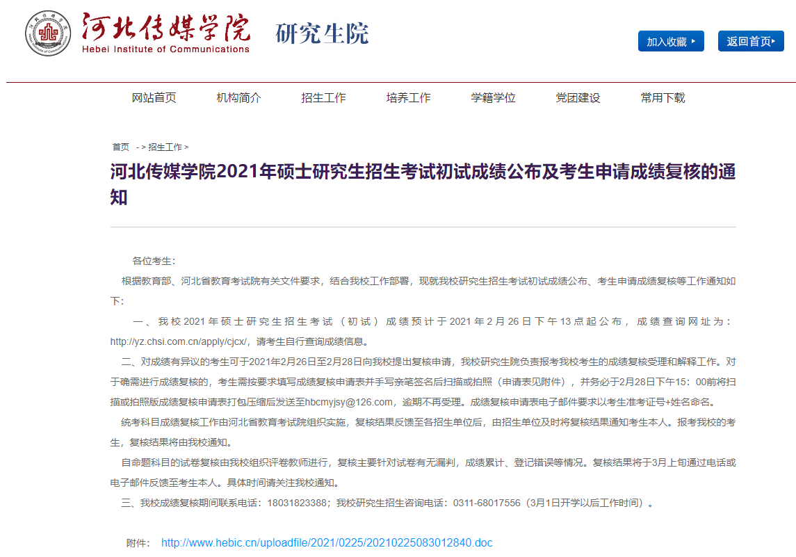 以上就是小編整理“2021考研初試成績:河北傳媒學院考研初試成績查詢入口開啟!初試成績已公布!”的全部內容,想了解更多相關信息請持續(xù)關注本網站。