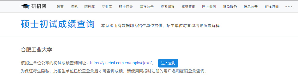 合肥工業大學考研初試成績查詢入口https://yz.chsi.com.cn/apply/cjcx/sch/10359.dhtml