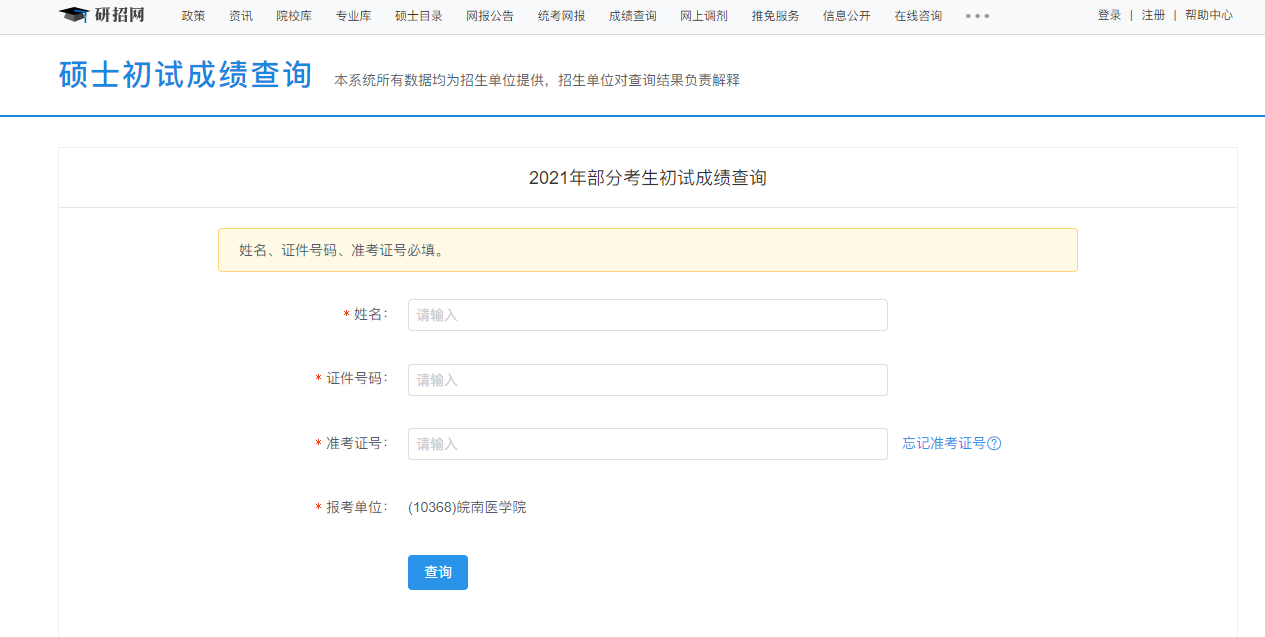 2021考研初試成績(jī):皖南醫(yī)學(xué)院考研初試成績(jī)查詢?nèi)肟陂_啟!初試成績(jī)已公布!