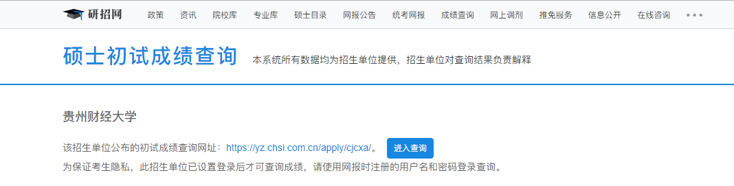 貴州財經大學考研初試成績查詢入口https://yz.chsi.com.cn/apply/cjcx/sch/10671.dhtml