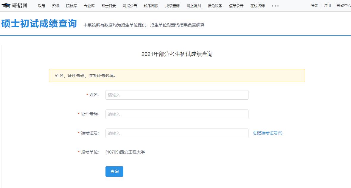 2021考研初試成績:西安工程大學考研初試成績查詢?nèi)肟陂_啟!初試成績已公布!”的內(nèi)容,希望對你們有所幫助。