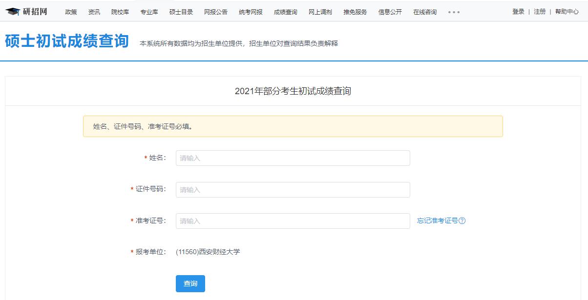 2021考研初試成績:西安財經(jīng)大學考研初試成績查詢?nèi)肟陂_啟!初試成績已公布!”的內(nèi)容,希望對你們有所幫助。