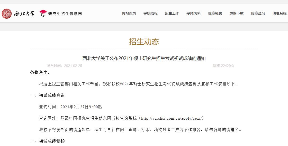 2021考研初試成績(jī):西北大學(xué)考研初試成績(jī)查詢?nèi)肟陂_啟!初試成績(jī)已公布!”的內(nèi)容,希望對(duì)你們有所幫助。