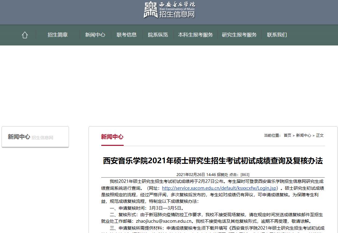 2021研究生考研已經結束,西安音樂學院考研成績查詢入口已經開通,2021考研國家線一般會在3月中上旬公布,具體時間以官網發布時間為準;今日小編整理了“