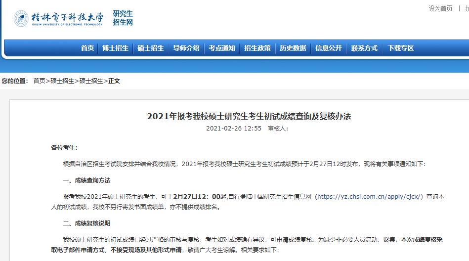2021考研初試成績:桂林電子科技大學考研初試成績查詢入口開啟!初試成績已公布!”的內容,希望對你們有所幫助。