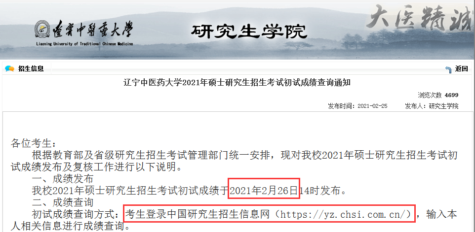 以上就是小編整理“2021考研初試成績:遼寧中醫藥大學考研初試成績查詢入口開啟!初試成績已公布!”的全部內容,想了解更多相關信息請持續關注本網站。