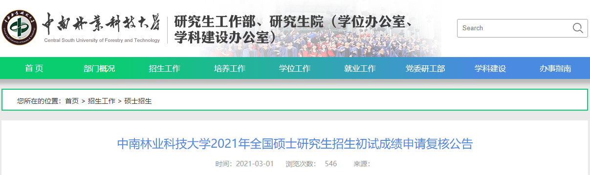 2021考研初試成績:中南林業科技大學考研初試成績查詢入口開啟!初試成績已公布!