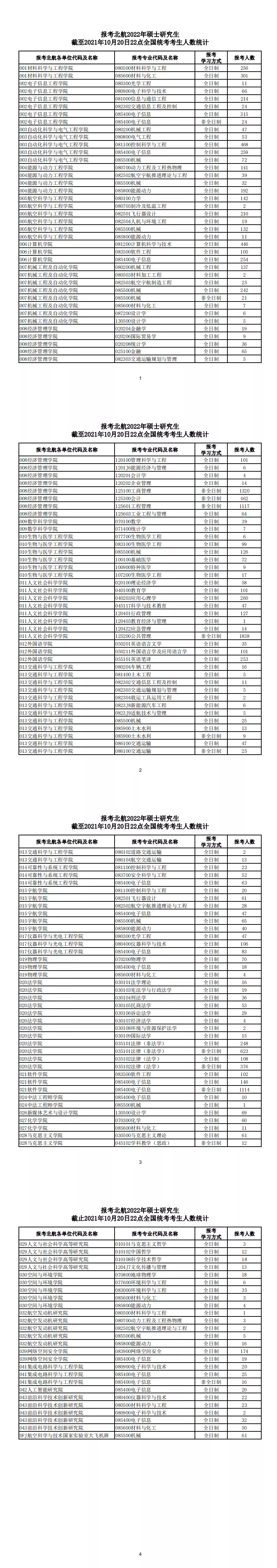 2022考研報名人數:北京航空航天大學2022年碩士研究生截至2021年10月20日22點全國統考考生人數統計”全部內容,祝您考研成功!