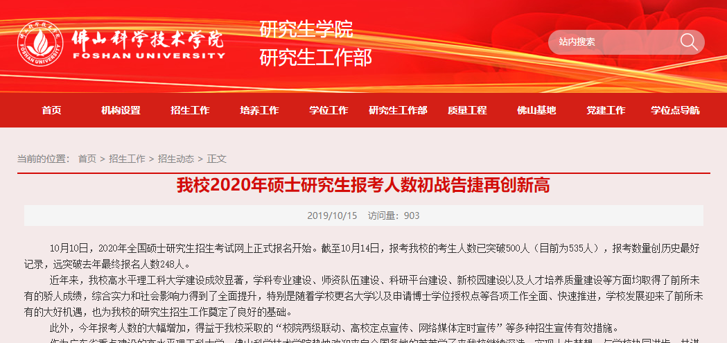 以上就是“2020考研報名人數 | 佛山科學技術學院2020考研報名人數為535人,報考數量創歷史最好記錄”的全部內容!2020考研總人數是多少還不確定,但有一點可以肯定,考研人數必定將逐年遞增。希望大家抓住機會,早日考研成功!