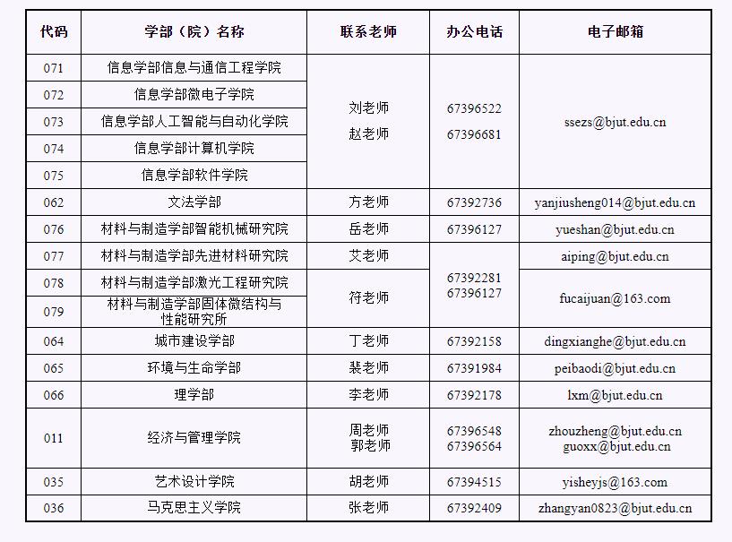北京工業大學研招辦郵箱:yanzhaoban@bjut.edu.cn