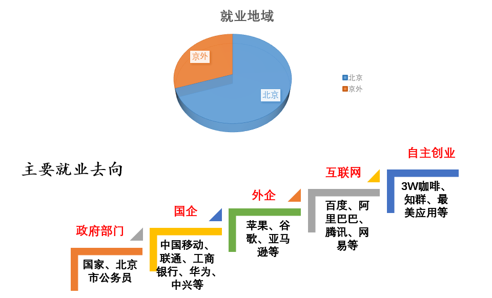 近年來研究生就業率保持在 100%,絕大部分畢業生在國家企事業、銀行、互聯網、國際知名企業從事交互設計、用戶研究、數字媒體開發以及文化創意、新媒體傳播等工作。