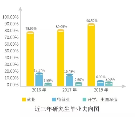 牢固樹立人才培養(yǎng)質(zhì)量意識。為研究生就業(yè)搭建平臺、提供保障、近年來我校研究生一次性就業(yè)率逐步提升,就業(yè)質(zhì)量穩(wěn)步提高。