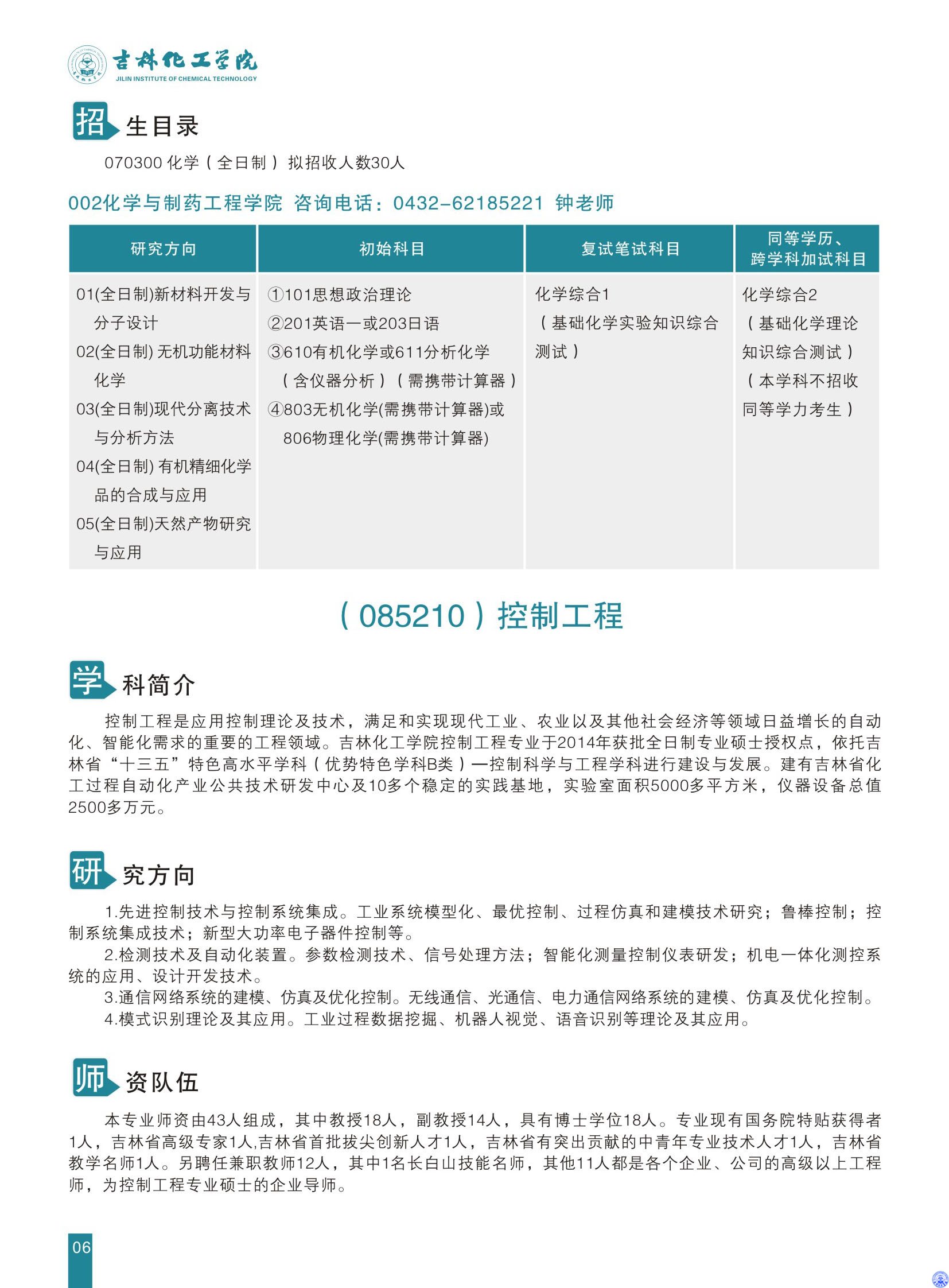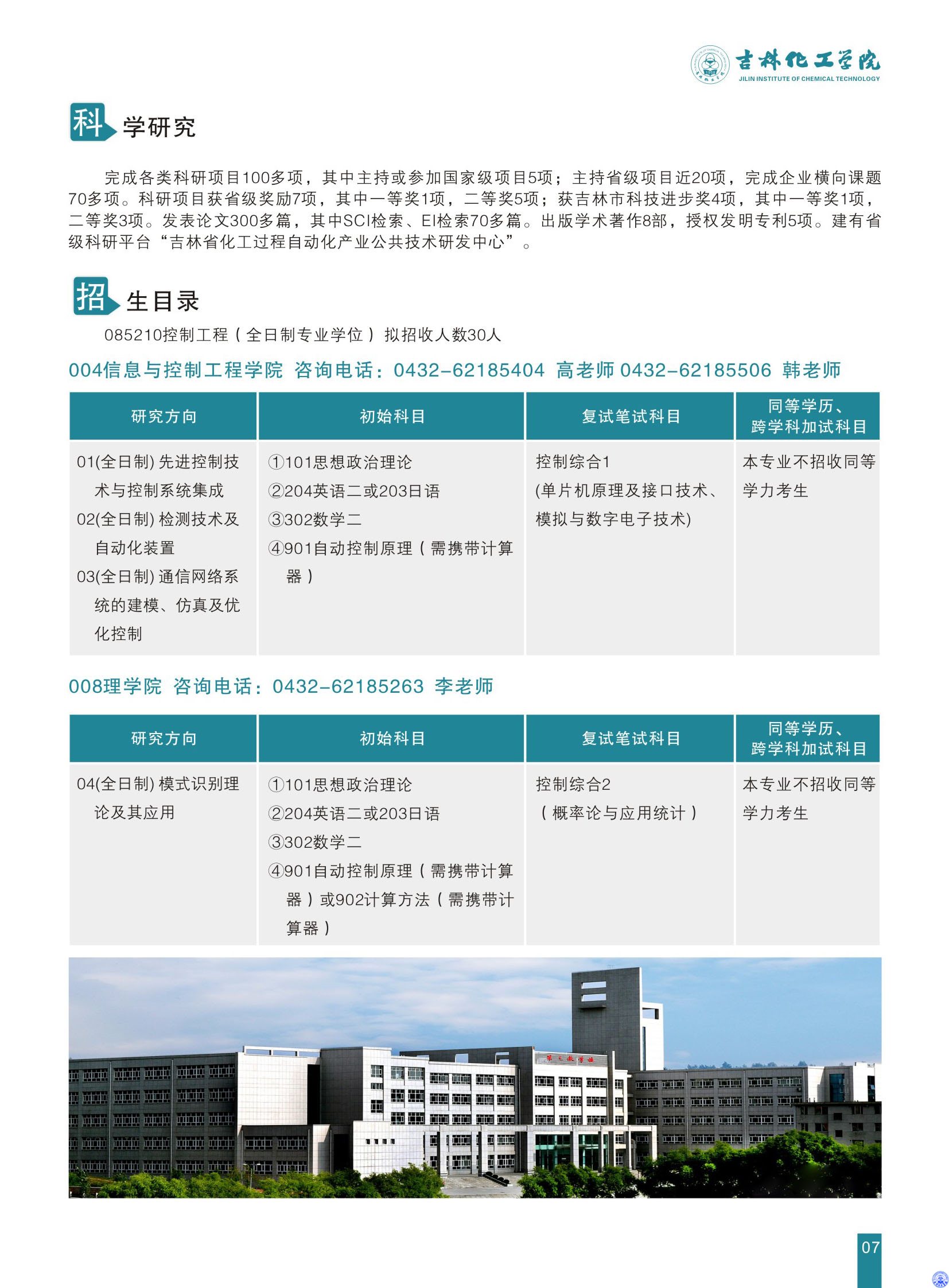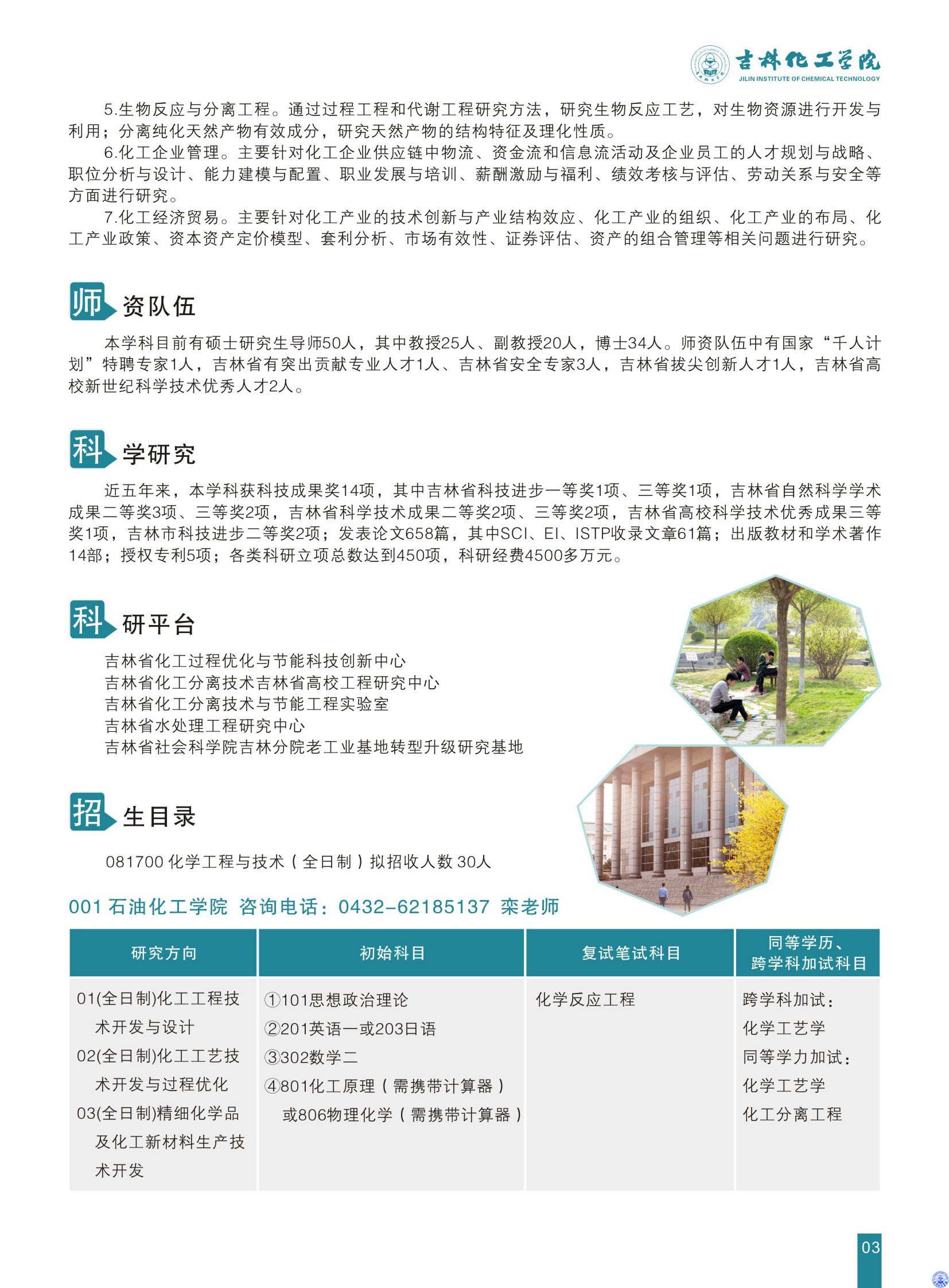 吉林化工學院2020年全日制碩士研究生招生簡章